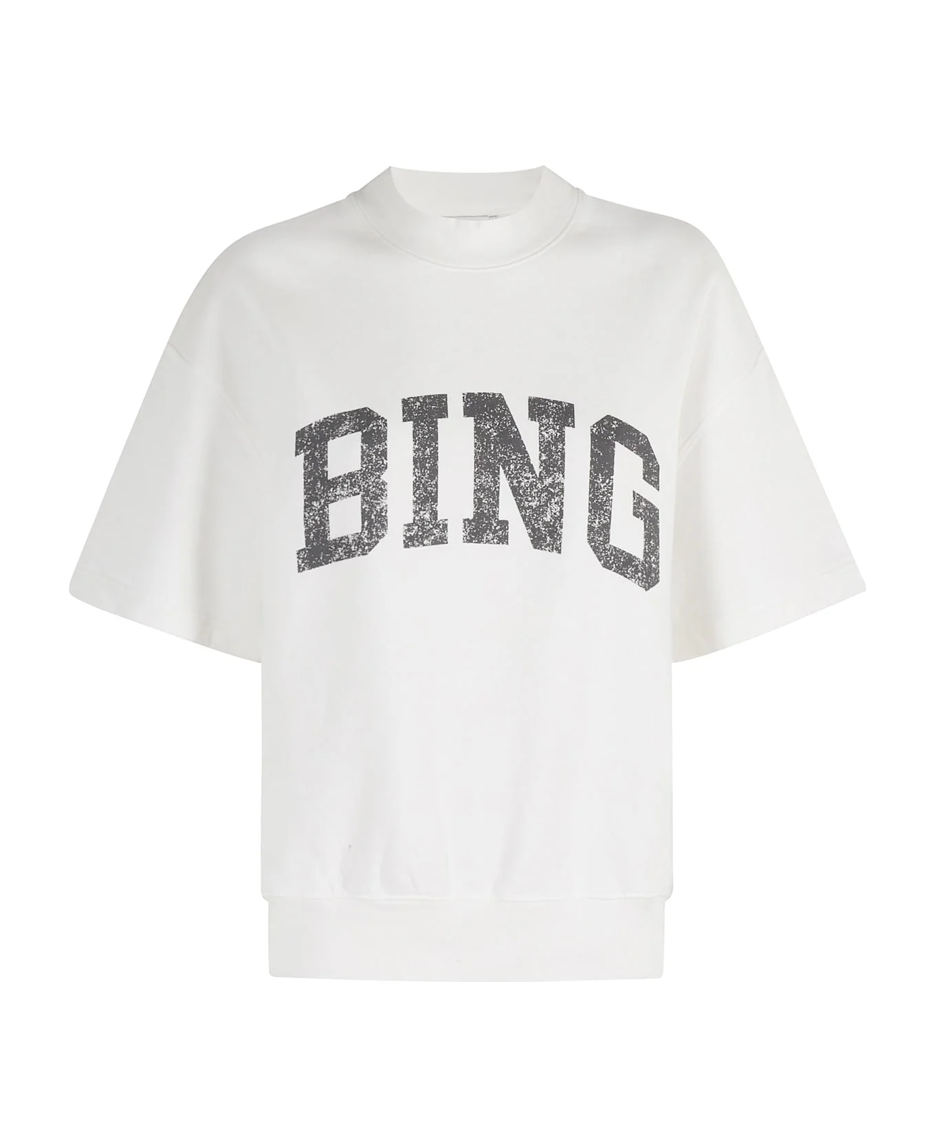 Jay sweatshirt - Anine Bing - white color - French Terry cotton - crew neck - half sleeves - ribbed trim - Bing graphic screen printed in black - boxy fit Made in: Turkey Color: Off White Model number: A0811002|097OFF