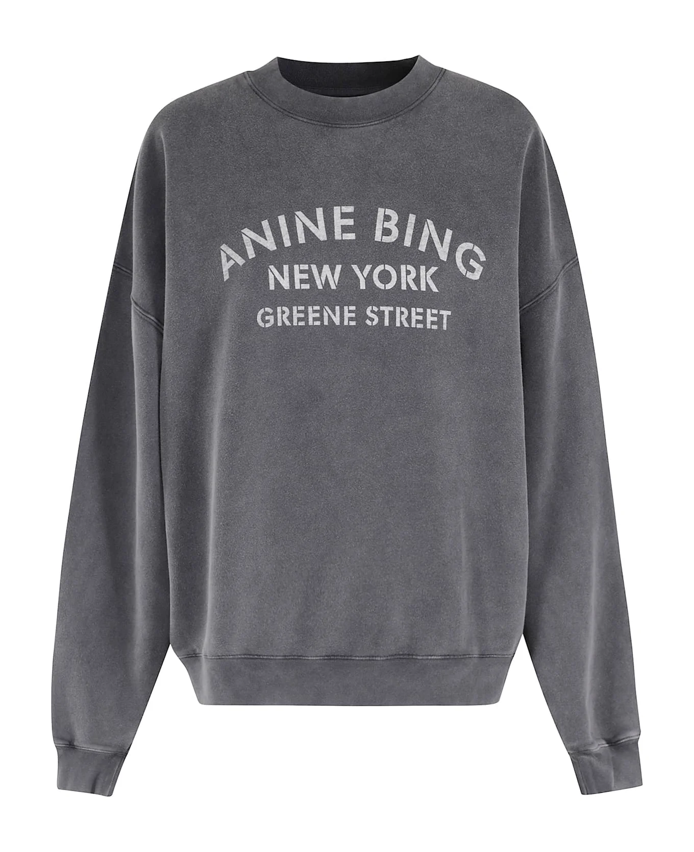 Sweatshirt - Anine Bing - Gray color - Spotted pattern - Crew neck - Long sleeves - Dropped shoulder - Contrasting lettering on chest Made in: China Color: Washed Black Model number: A08