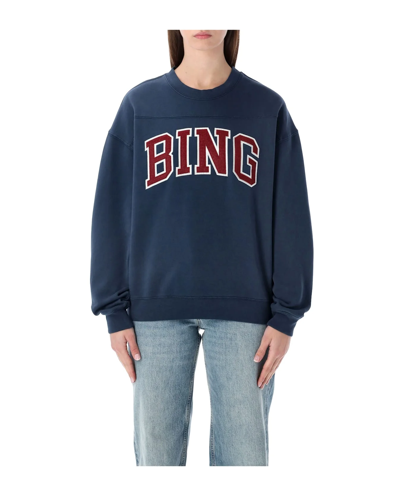 Relaxed And Modern, The Anine Bing Trenton Sweatshirt In Blue Cotton Features An Oversized Silhouette With A Collegiate-inspired Front Logo. Soft And Comfortable, It Adds A Sporty Touch To Everyday Outfits While Maintaining The Clean, Minimal Aesthetic Of The Brand. Perfect Paired With Denim For Effortless Street Style. Crew Neck Long Sleeves With Dropped Shoulders Oversized Fit Varsity-style Front Logo Ribbed Neckline, Cuffs And Hem Alessandra Is 1,75 M And Wears Size S Composition: 100% cotton Made in: Turkey Color: DARK BLUE Model number: A0812203NYA36