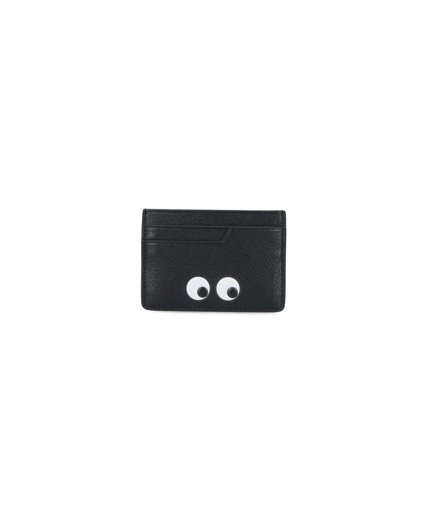 Black goat leather anya hindmarch Eyes card holder, contrast "eyes" detail on the front, four card slots, one main pocket. Composition: 100% Goat Leather Made in: China Color: Black Size and fit: - A 7.3 X L 10.4 X P 0.5 CM Model number: 929141BLACK