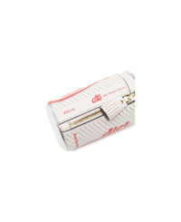 off-white/flame red leather top zip fastening clip fastening main compartment Made in: China Color: WHITE Size and fit: - depth: 7.0 centimetres, height: 12.0 centimetres, width: 7.0 centimetres Model number: 164818SS220214