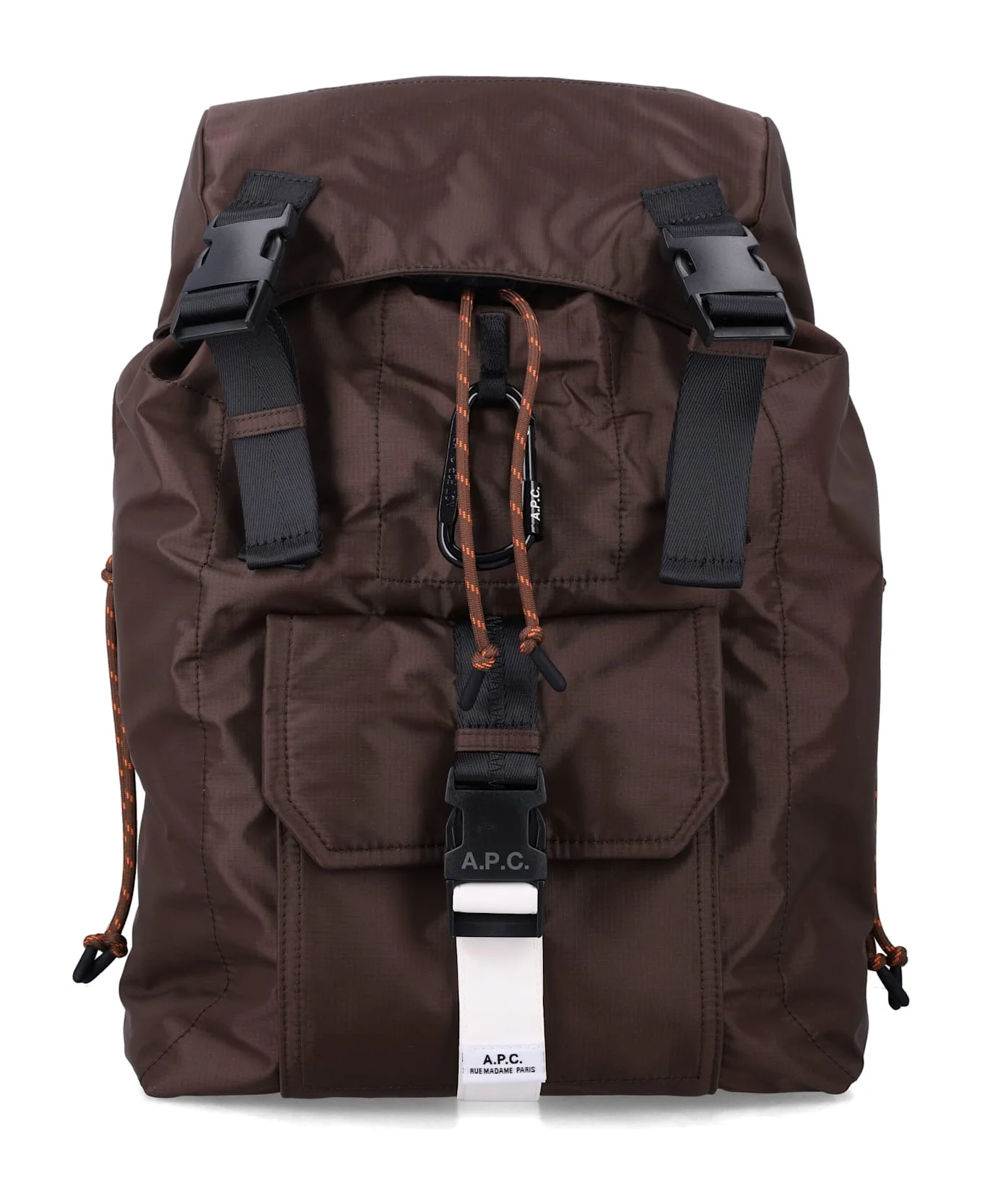 Designed With A Functional, Urban Spirit, The Trek Backpack By A. p. c. Combines Practicality And A Contemporary Look. Its Structured Shape Is Enhanced By Side Zip Pockets And Climbing-rope Drawstrings, While The Removable Snap Hook Adds A Utilitarian Touch. Adjustable Straps Ensure Comfort For Daily Use. Side Zip Pockets Removable Black Snap-hook Clasp Climbing-rope Drawstrings Adjustable Straps Height: 43 Cm Width: 27 Cm Depth: 14 Cm Composition: 100% nylonlon Made in: China Color: BROWN Size and fit: - Height: 43 cm Width: 27 cm Depth: 14 cm Model number: H62220PAAGSCAA