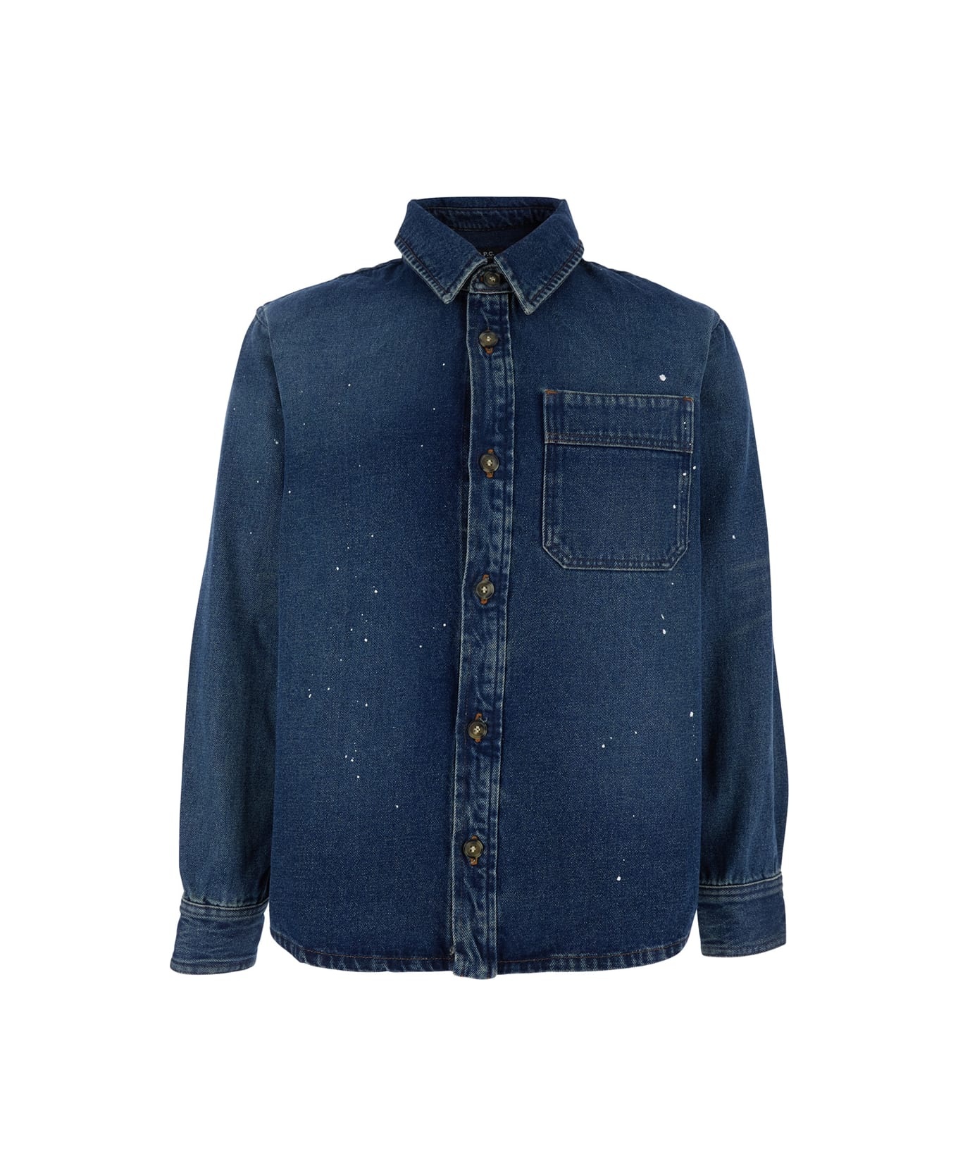 'basile' Blue Shirt With Chest Pocket And All-over Paint Effect In Cotton Man