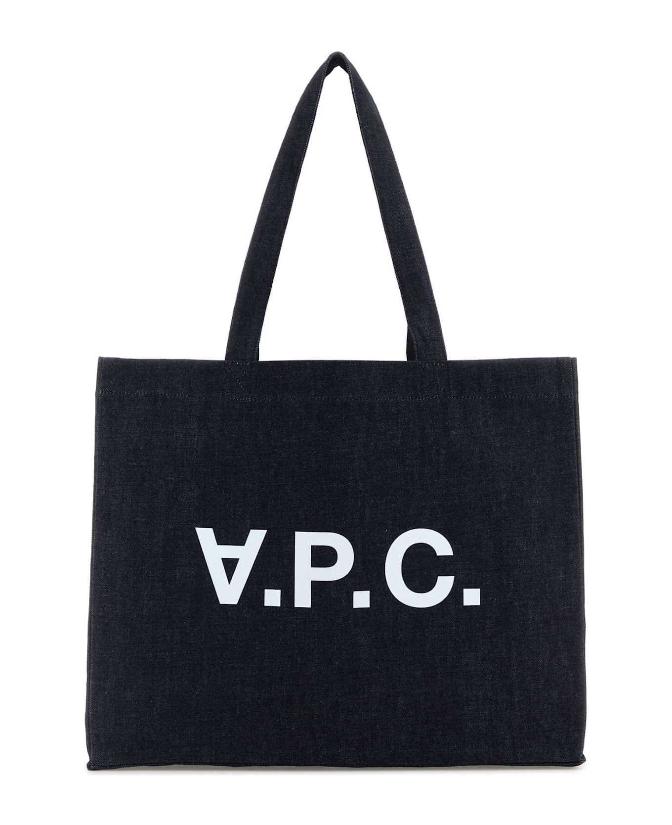 Denim Daniela Shopping Bag from A.P.C. Made in: China Color: INDIGO Size and fit: - Width: 44 cm Height: 36 cm Depth: 13 cm Handle height: 29 cm Model number: COHIZM61446IAI