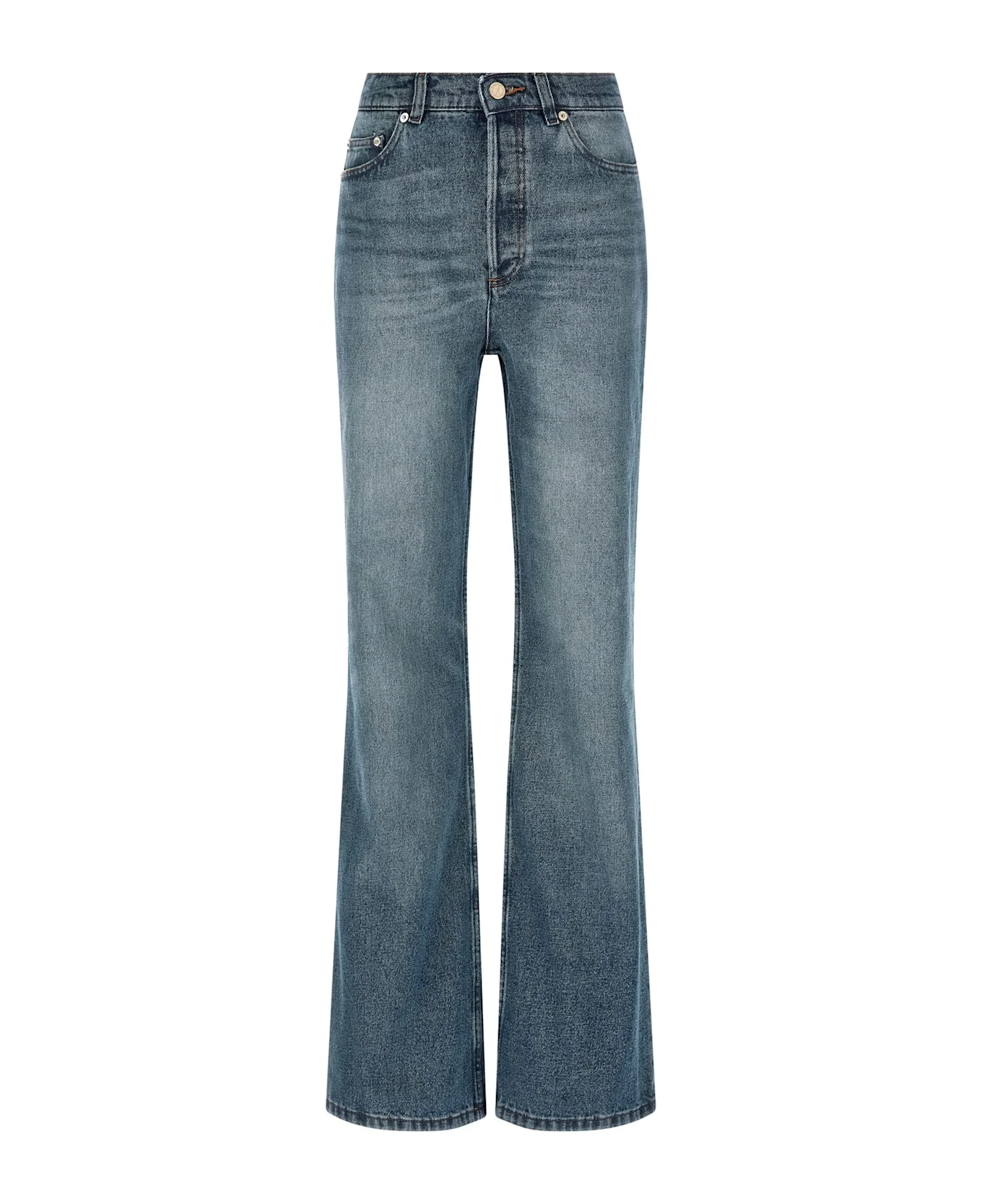 'Romy' stonewashed denim jeans with contrast stitching, high waist, flared leg, front button closure, five pockets. Composition: 100% cotton Made in: Egypt Color: Blue Size and fit: - true to size fit Model number: COHJLF09232IAL