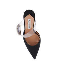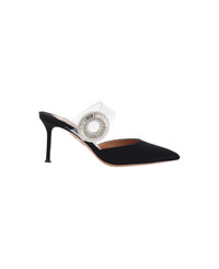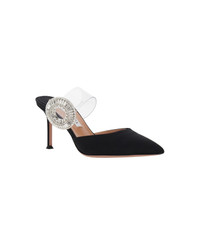 Black Slingback Mules With Crystal Embellishment And Transparent Strap In Suede Woman