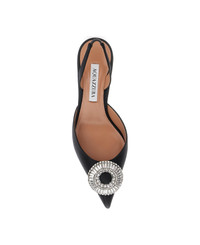 'crystal Hoop' Black Slingback Pumps With Rhinestoned Embellishment And Kitten Heel In Tech Fabric W