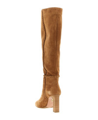 'Indy' suede boots, soft tube leg with tone-on-tone leather stitching, rounded toe, wide heel, leather sole. Composition: 100% calfskin leather (Bos Taurus) Made in: Italy Color: Beige Size and fit: - EU WOMAN - Heels: 8,5 cm Model number: IDYMIDB1SCRCAMEL