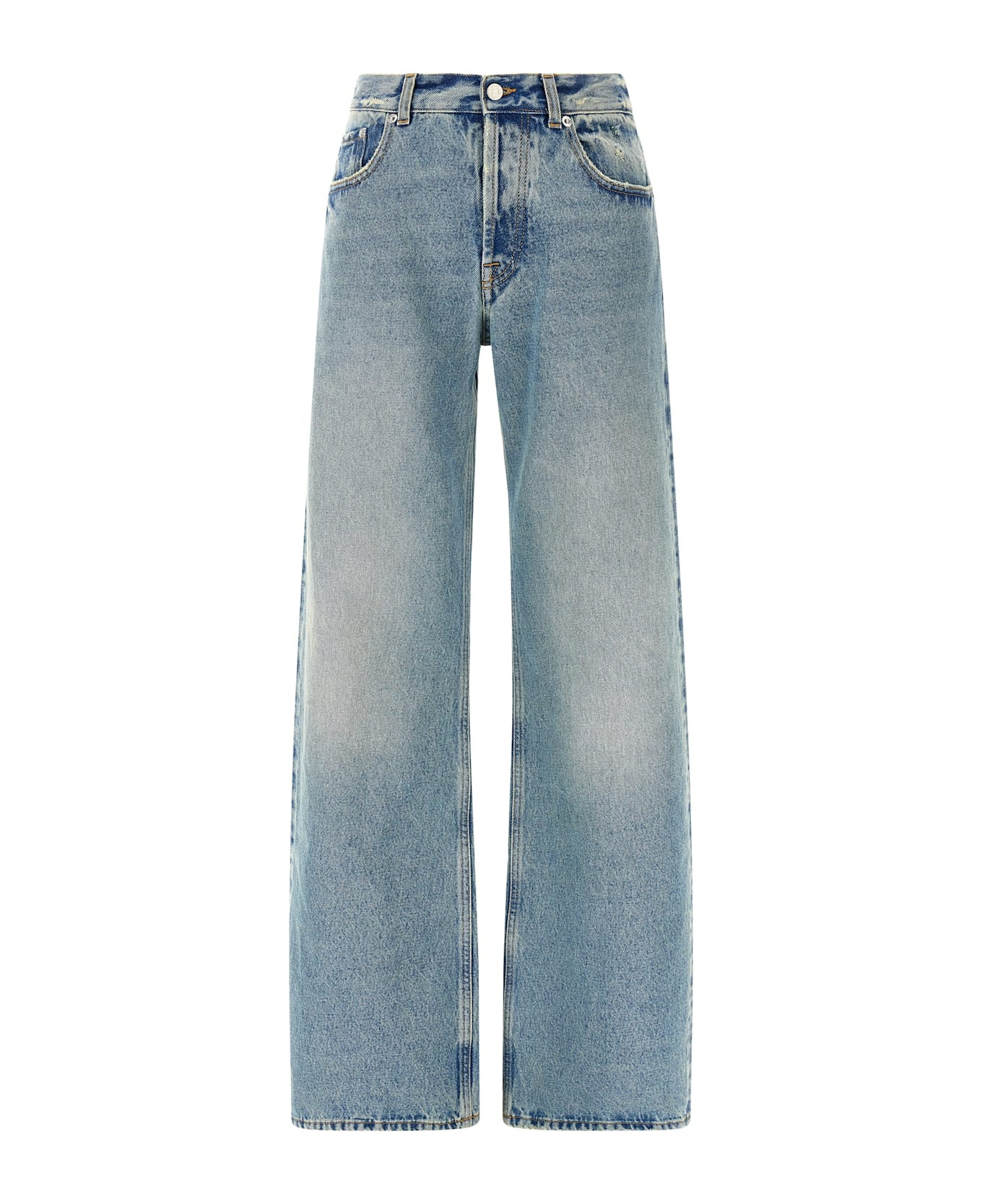 'Luke' used-effect stonewashed cotton denim jeans with button closure, five pockets, wide and straight leg. Composition: 100% cotton Made in: Italy Color: Light Blue Size and fit: - true to size fit Model number: ARMTMP015DE01005
