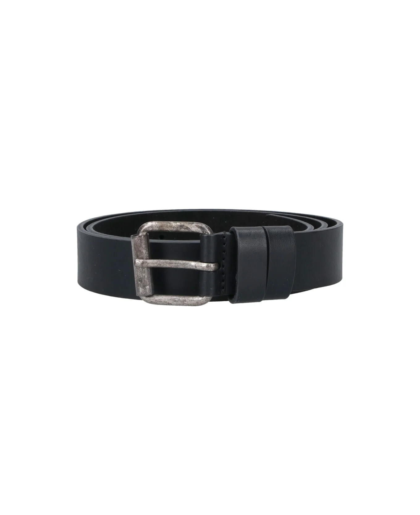 Aspesi black leather belt with silver metal buckle closure on the front, distressed detail, adjustable. Composition: 100% Leather Made in: Italy Color: Black Model number: 692857631241