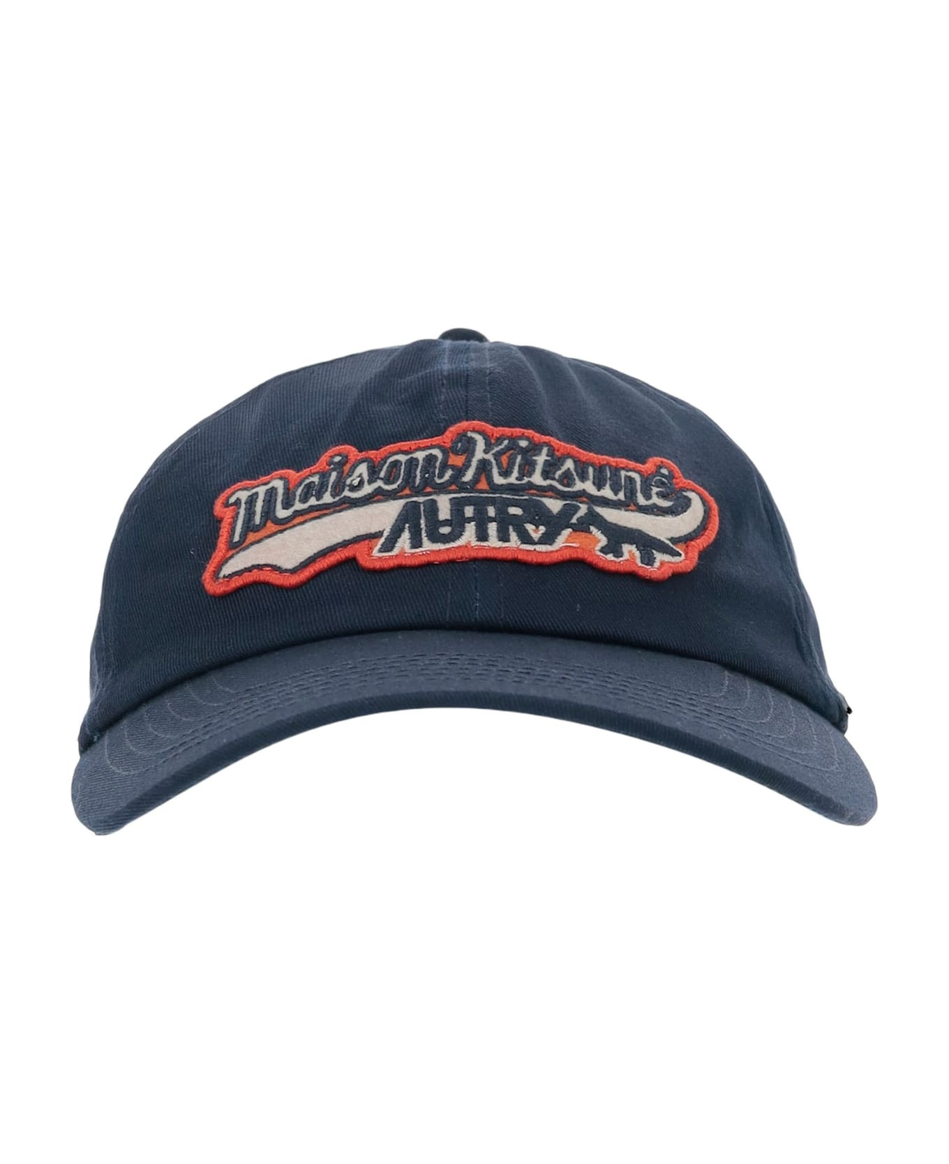 Baseball cap made from cotton Exclusive design created through a collaboration between Maison Kitsune and Autry Front embroidery featuring the combined logos of the two brands Rigid brim Adjustable closure at the back Navy blue Made in China Composition: 100% cotton Made in: China Color: Blue Size and fit: - One size fits all. Model number: ACPUMK3BBLUE