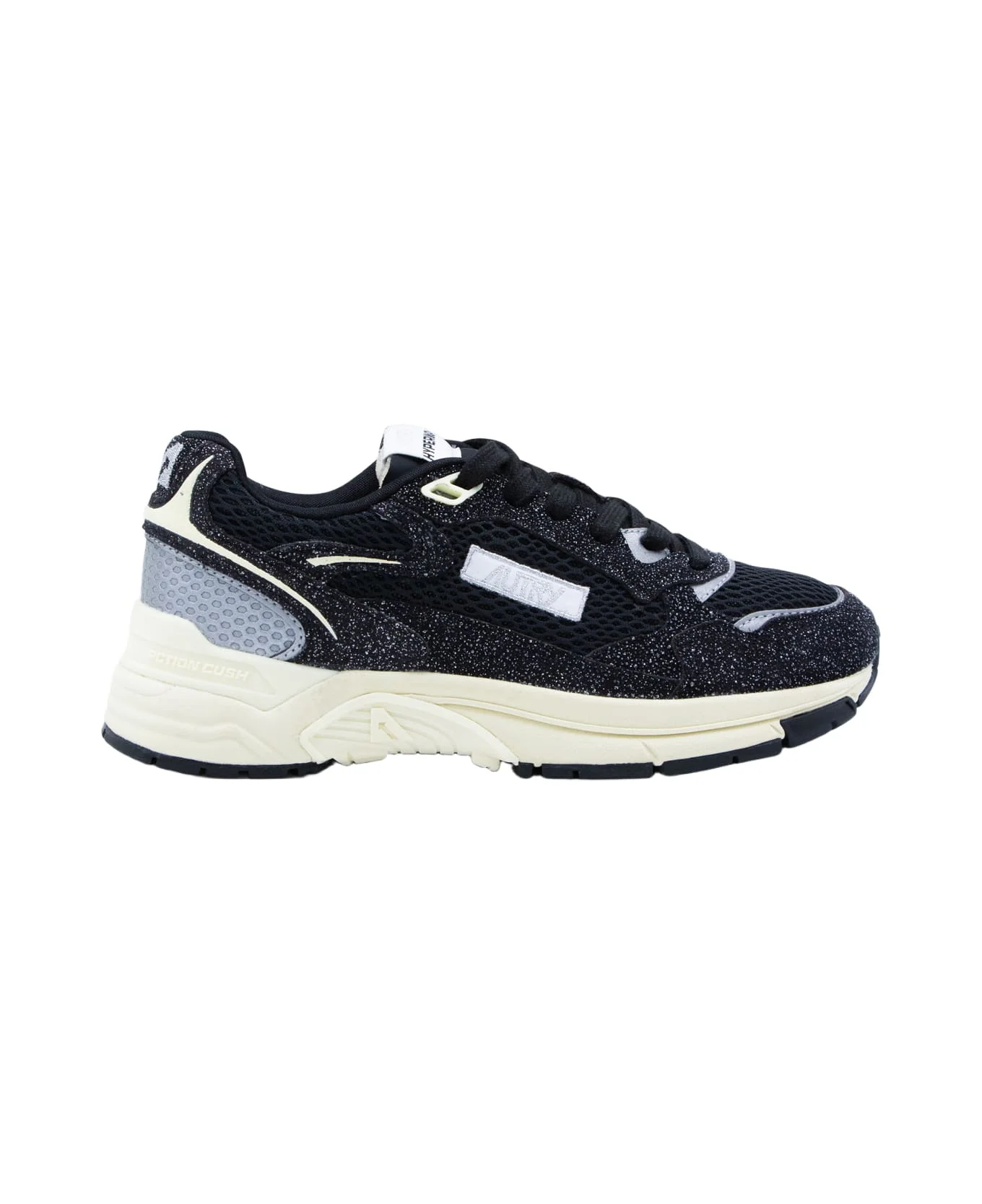 Black sneakers from Autry featuring round toe, laces fastening, leather sole and details. Composition: _cover, 100% El Tex Sole, 100% Elastodiene Made in: Indonesia Color: MESH/SUEGLIT BLACK/SILV Model number: HYLWHG01
