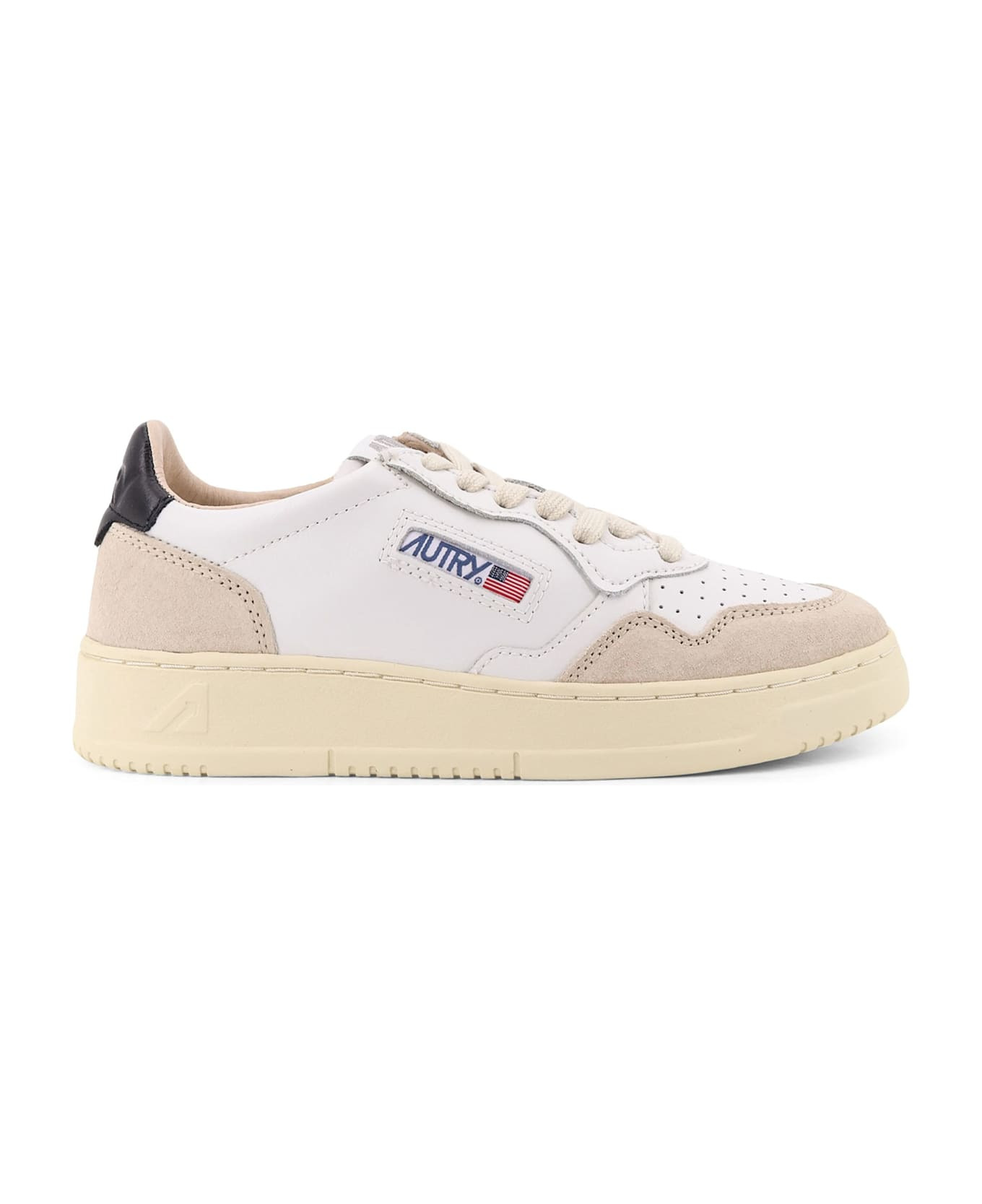 MEDALIST LOW SNEAKERS IN WHITE AND BLACK LEATHER AND BEIGE SUEDE