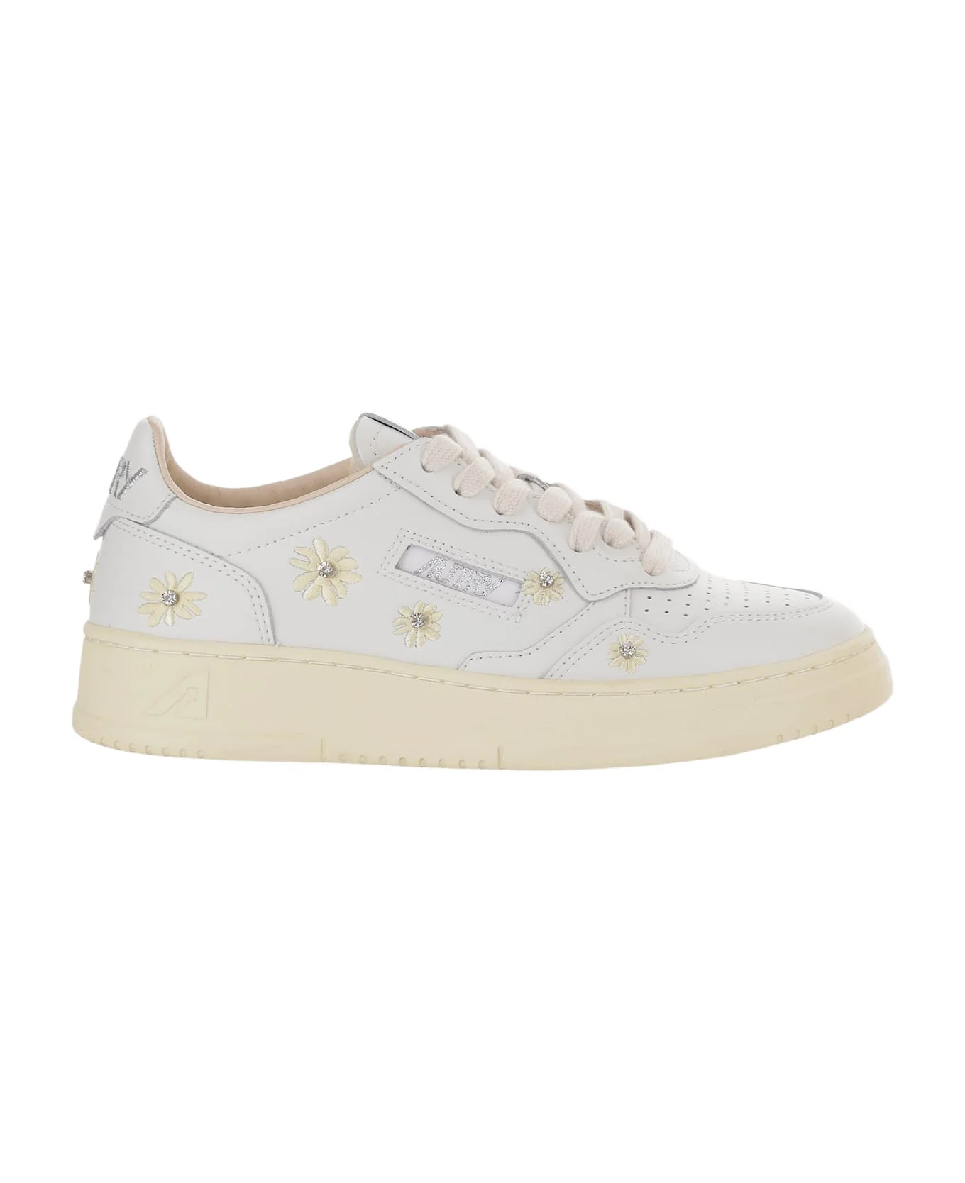 Sneakers made of leather Perforated round toe Front lacing All-over embroidered flowers Logo details Rubber sole White Made in Indonesia Composition: 100% leather Made in: Indonesia Color: White Size and fit: - Size 37 EU - Model number: AULWWE01LEAEMBFLOWWHTRUT
