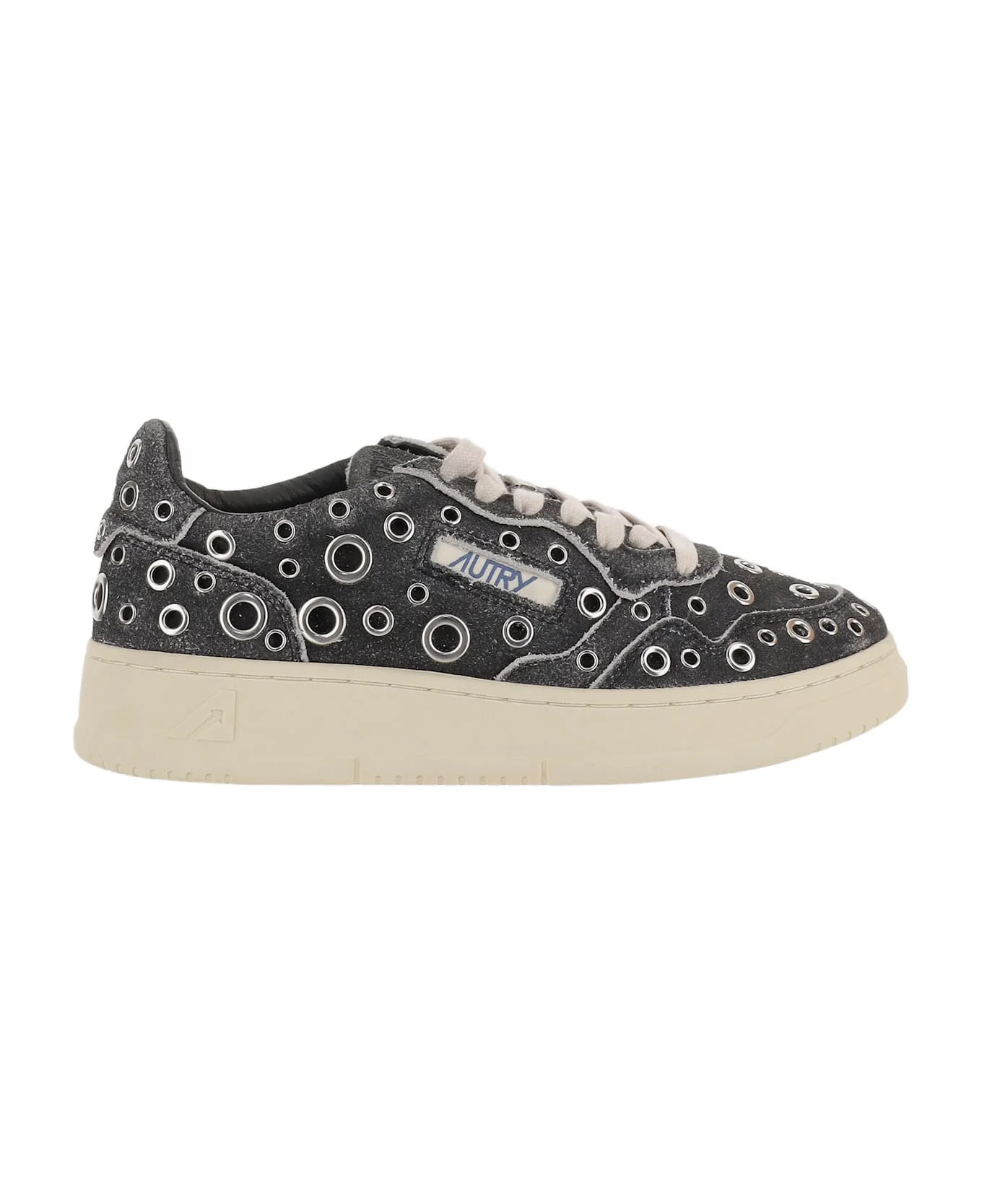 Sneakers made from suede leather All-over metal eyelet decoration Round toe Front lacing Phylon and rubber sole Black, silver Made in Indonesia Composition: 65% leather, 35% eyelets Made in: Indonesia Color: Black Size and fit: - Size 40. Model number: AULWTF01SUEHOLBLKSILV