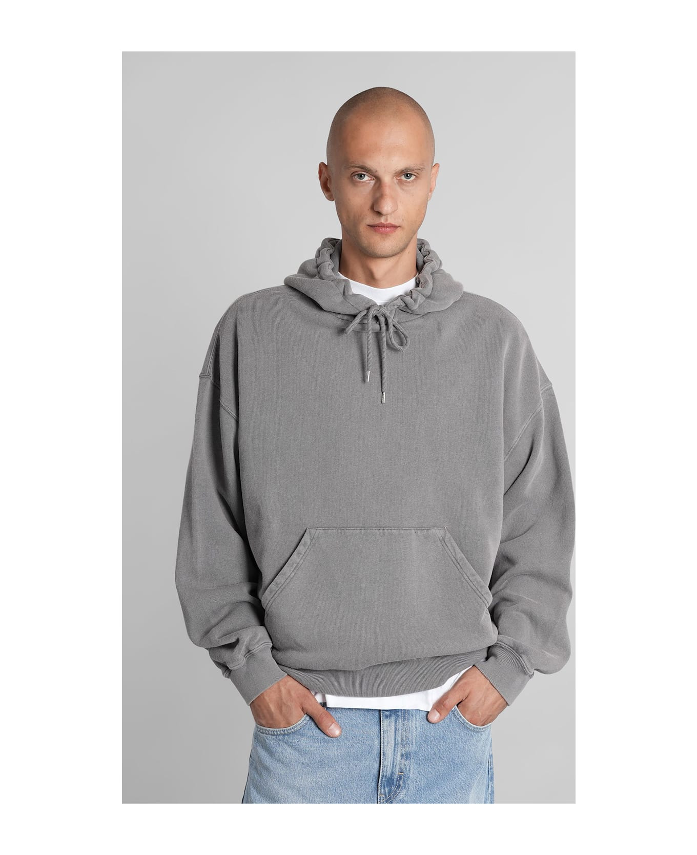 Distorti Washed Sweatshirt in grey cotton, adjustable hood with laces, long sleeves, logo print back, kangaroo pockets, ribbed cuffs and bottom, 100% cotton, Made in Portugal, the models is 1. 91 and wears size XL Made in: Portugal Color: GREY Model number: A3434001DISTORT