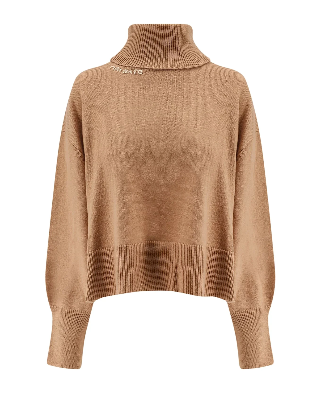 Logo embroidery on the collar Long sleeves with maxi cuffs Asymmetrical hem Side slits 50% polyamide 50% wool SKU: A3324002CAMEL Made in: China Color: Camel Model number: A3324002CAMEL