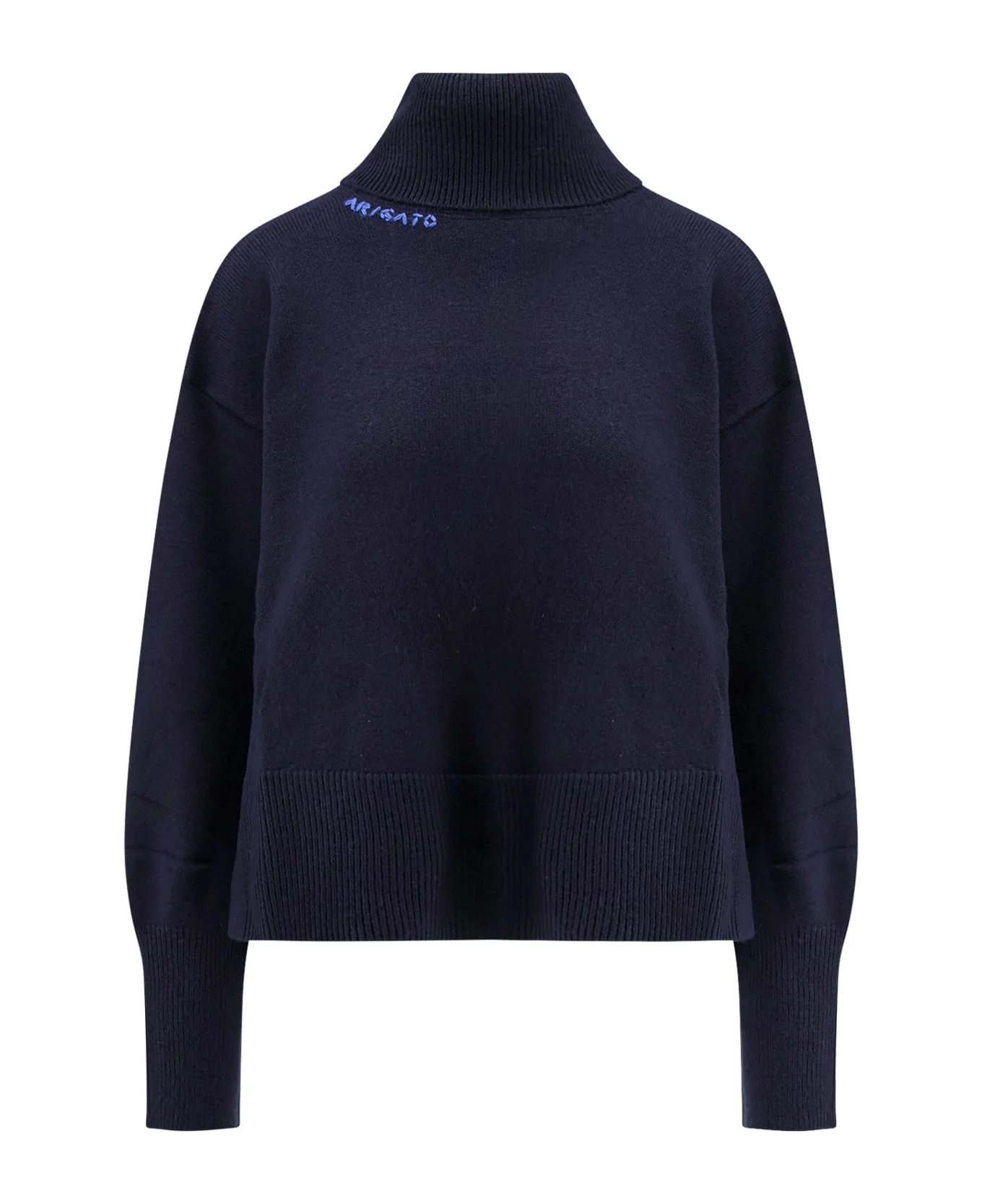 Logo embroidery on the collar Long sleeves with maxi cuffs Asymmetrical hem Side slits 50% polyamide 50% wool SKU: A3324001NAVY Made in: China Color: Blue Model number: A3324001NAVY