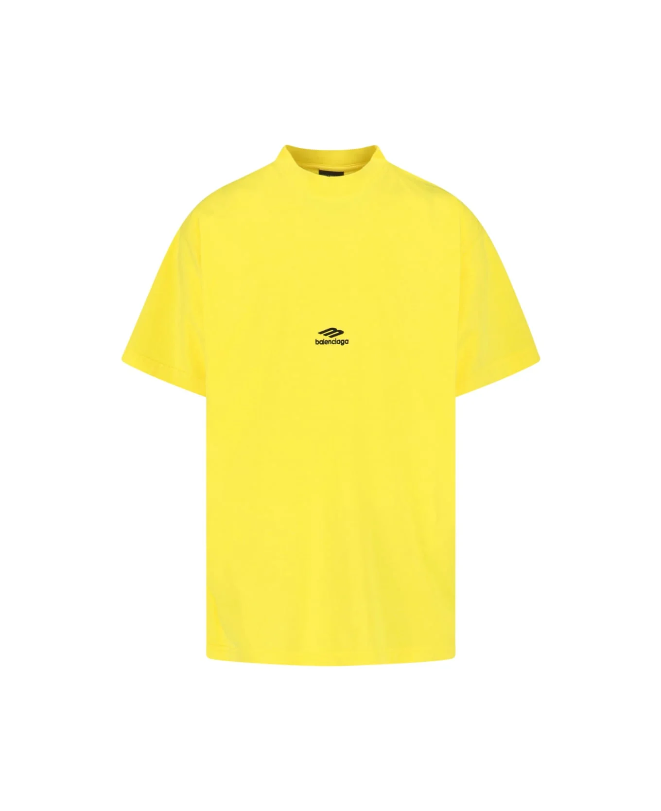 Balenciaga '3B Sports Icon' yellow cotton crew neck t-shirt with short sleeves, logo printed at the back and straight hem. Composition: 100% Cotton Made in: Portugal Color: Yellow Size and fit: - Vestibilita morbida Model number: 850345TTVK57440
