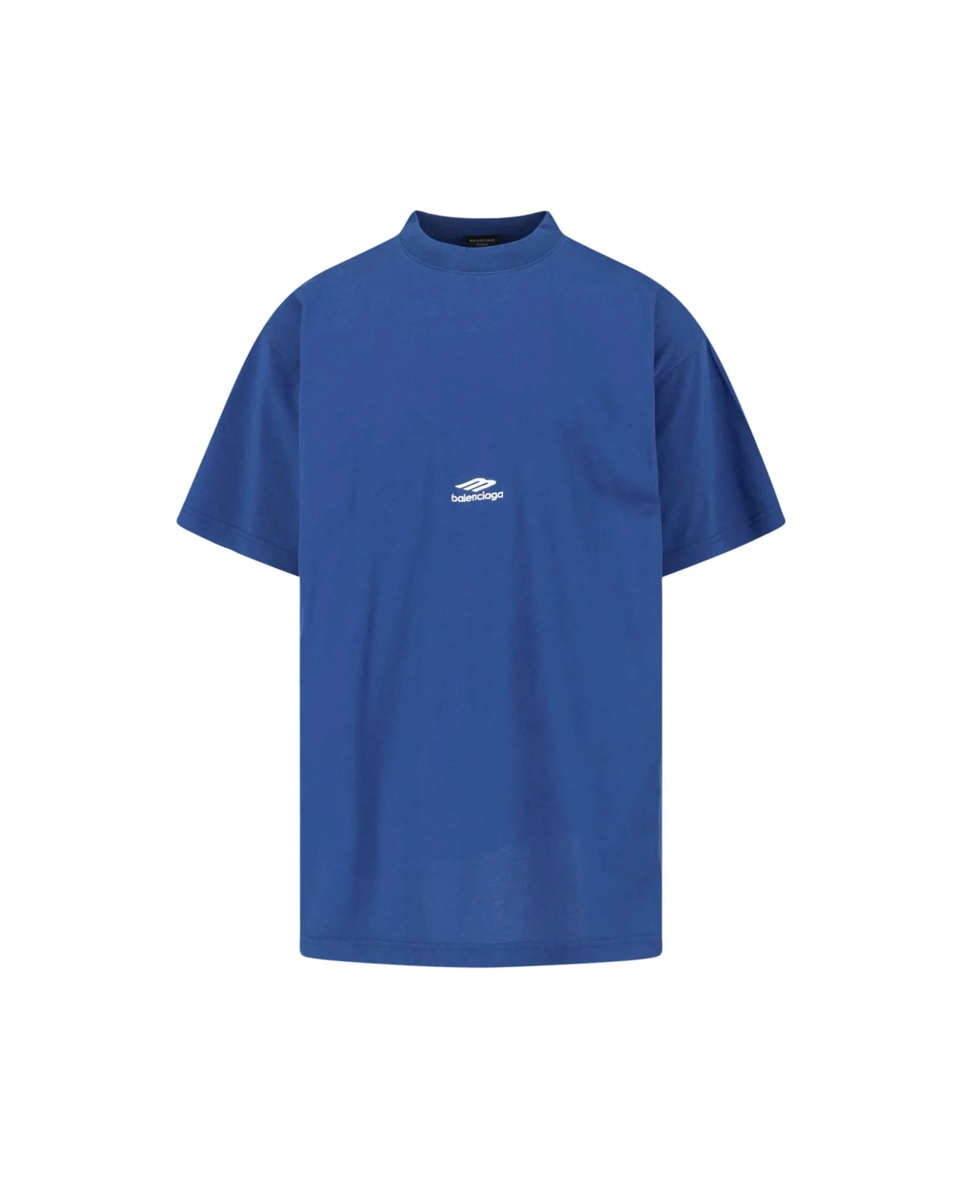 Balenciaga '3B Sports Icon' blue cotton crew neck t-shirt with short sleeves, logo printed at the back and straight hem. Composition: 100% Cotton Made in: Portugal Color: Blue Size and fit: - Vestibilita morbida Model number: 850345TTVK57740