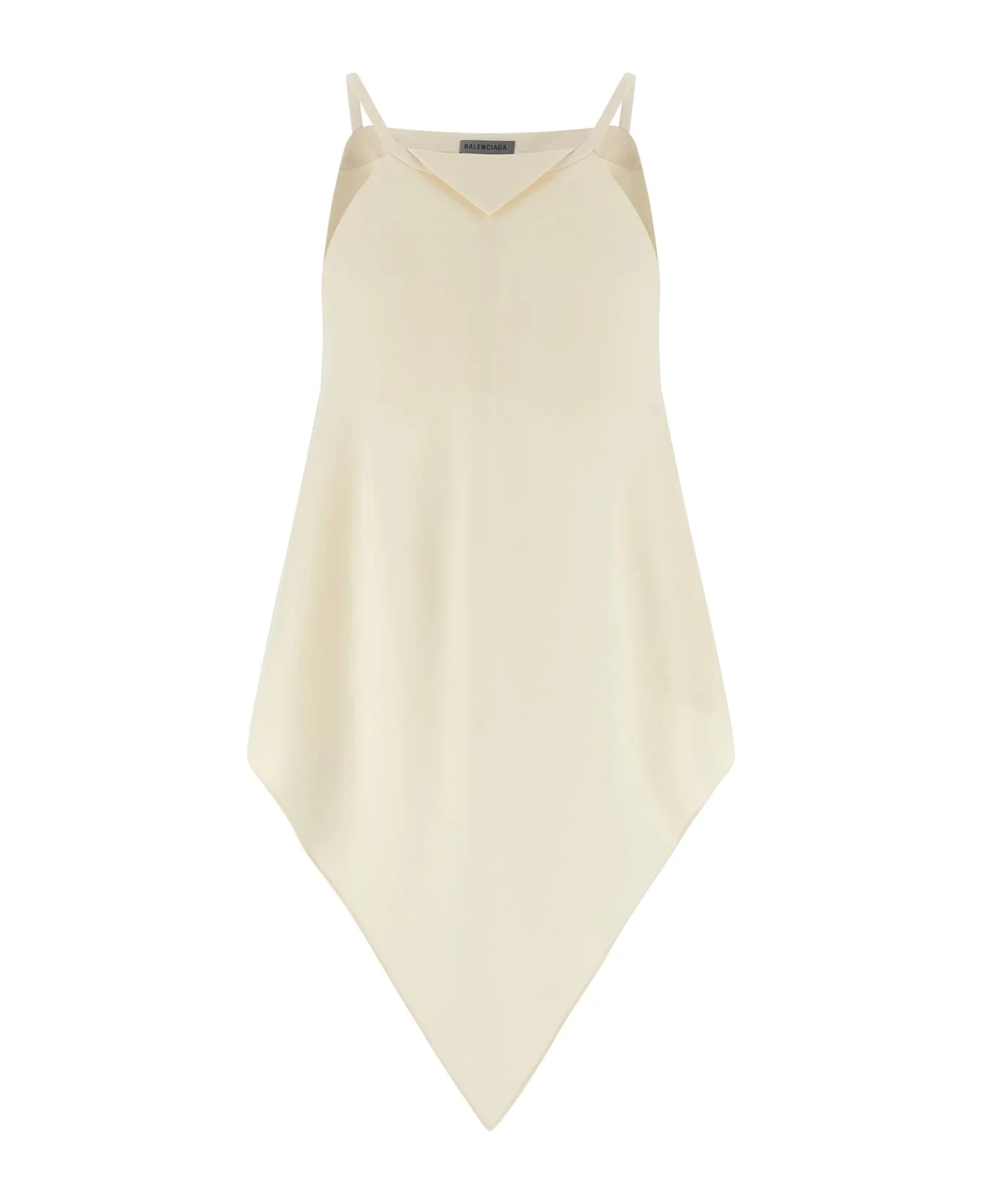 'A Sciarpa' wool and silk crepe top with pointed draped panel construction, square neckline with pointed insert at the front and back, thin straps, single seam on each side, asymmetrical hem. Composition: 65% silk, 35% wool Made in: Italy Color: White Size and fit: - true to size fit - FRENCH size Model number: 872352TUT149002