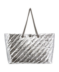 Women's Crush Large Carry All Tote Bag Metallized Quilted in Silver