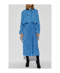 Pussy-bow printed crepe de chine midi shirt dress Azure
