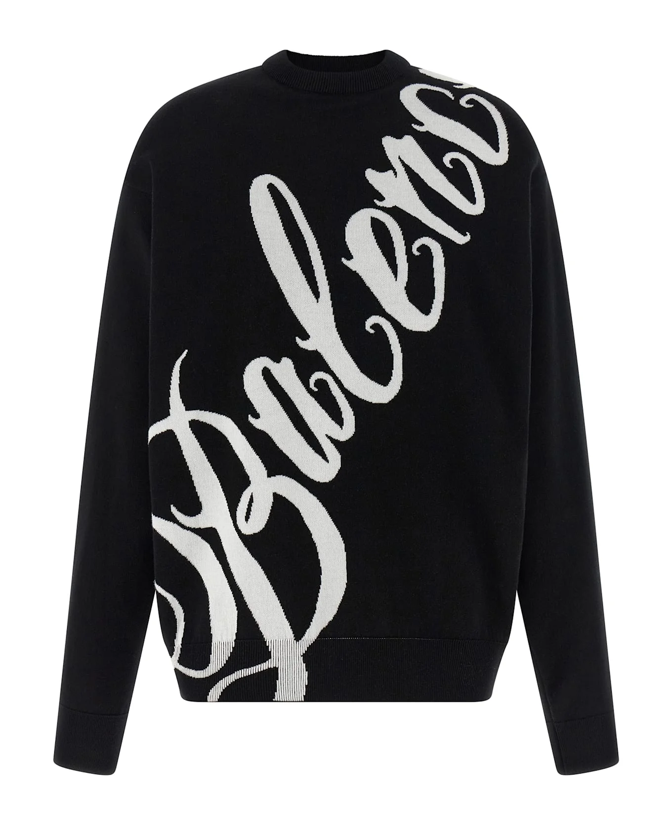 Cotton blend knit sweater, jacquard 'Big B' pattern on the front and back, crew neck, long cuffed sleeves and dropped shoulders. Composition: 96% cotton 3% polyamide 1% elastane Made in: Italy Color: White/Black Size and fit: - true to size fit Model number: 856728T34381070