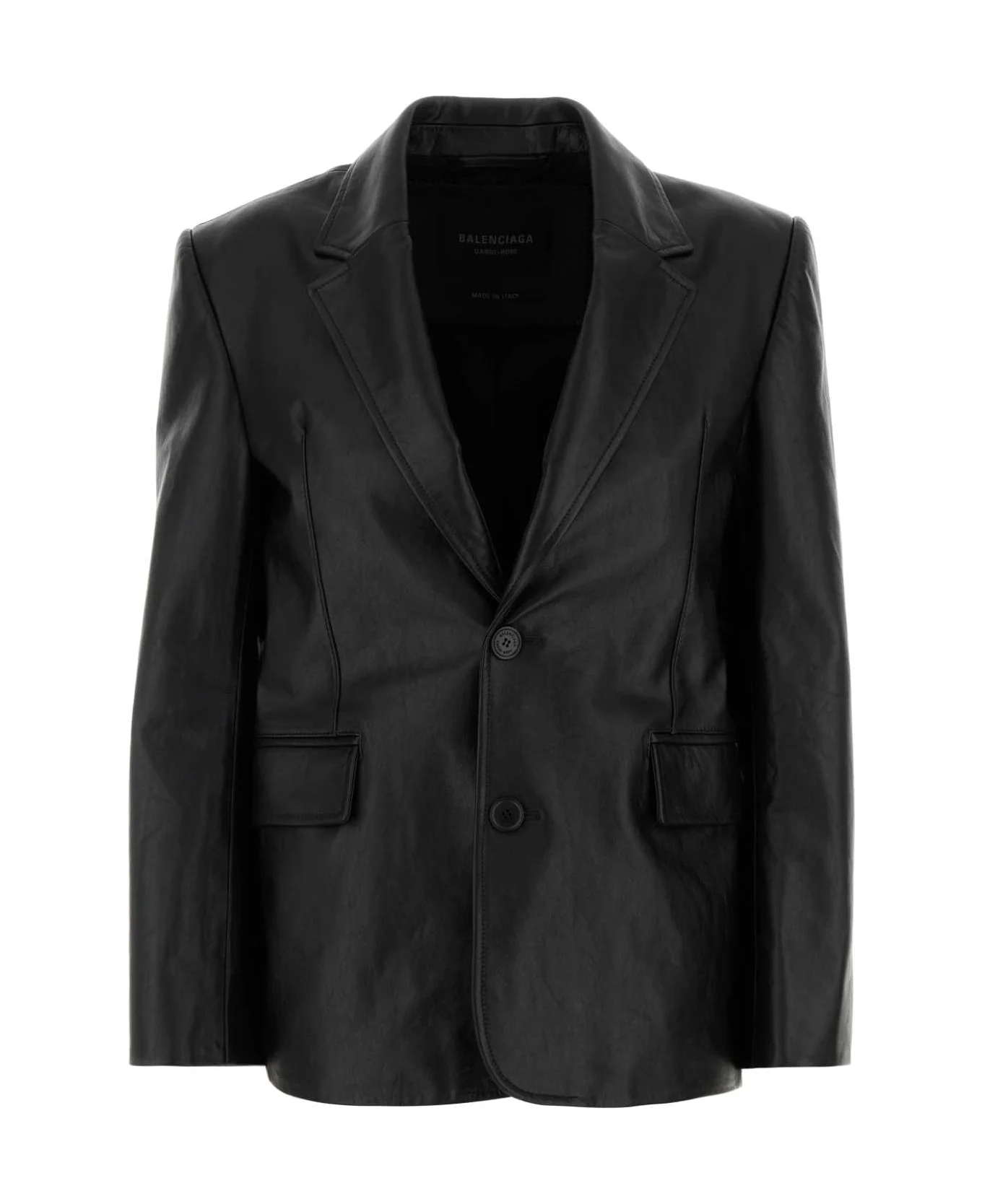 Black Leather Jacket from Balenciaga Made in: Italy Color: BLACK Model number: 856379TQS041000