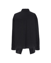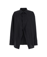 Black Shirt With Pointed Collar And Front Slit In Cotton Woman