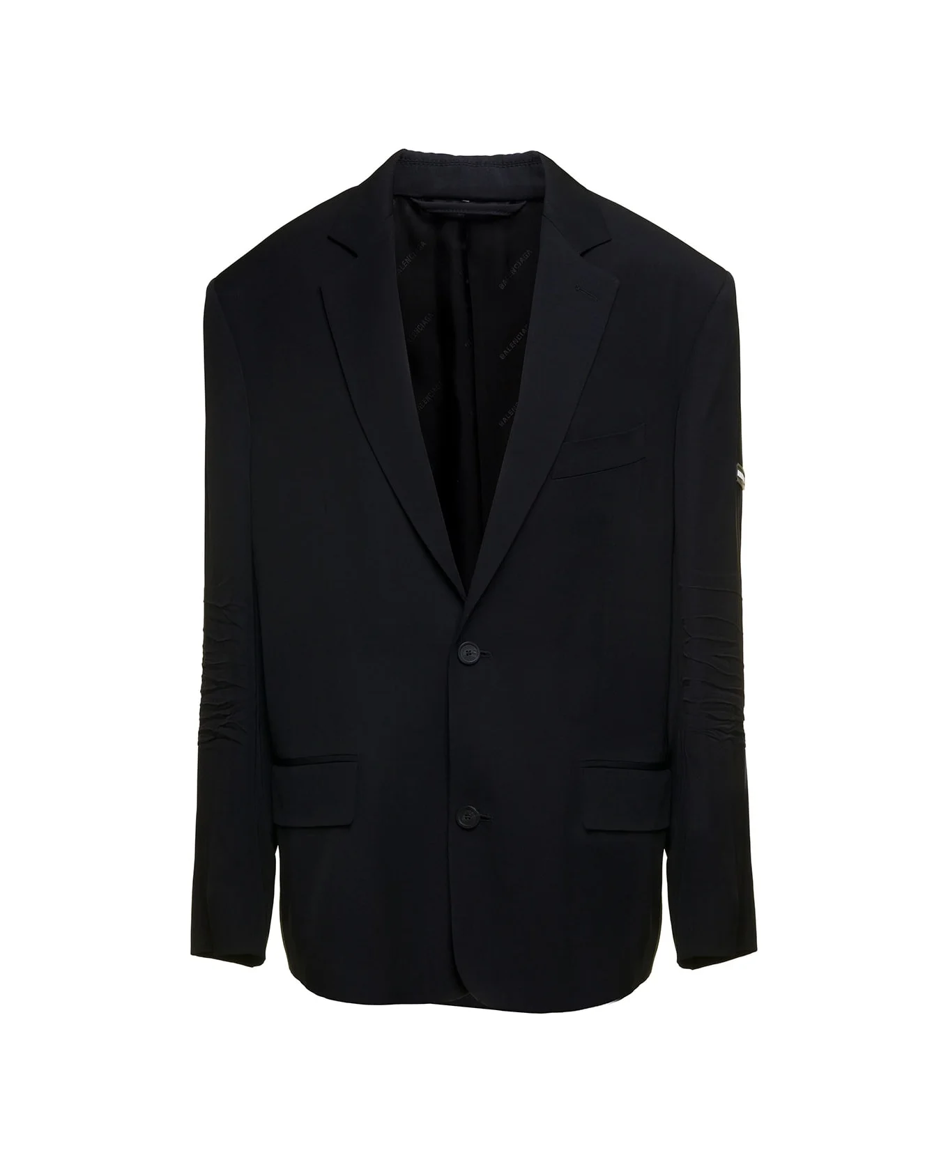 Black Single-breasted Blazer With Logo Patch And Crease Details In Viscose Man