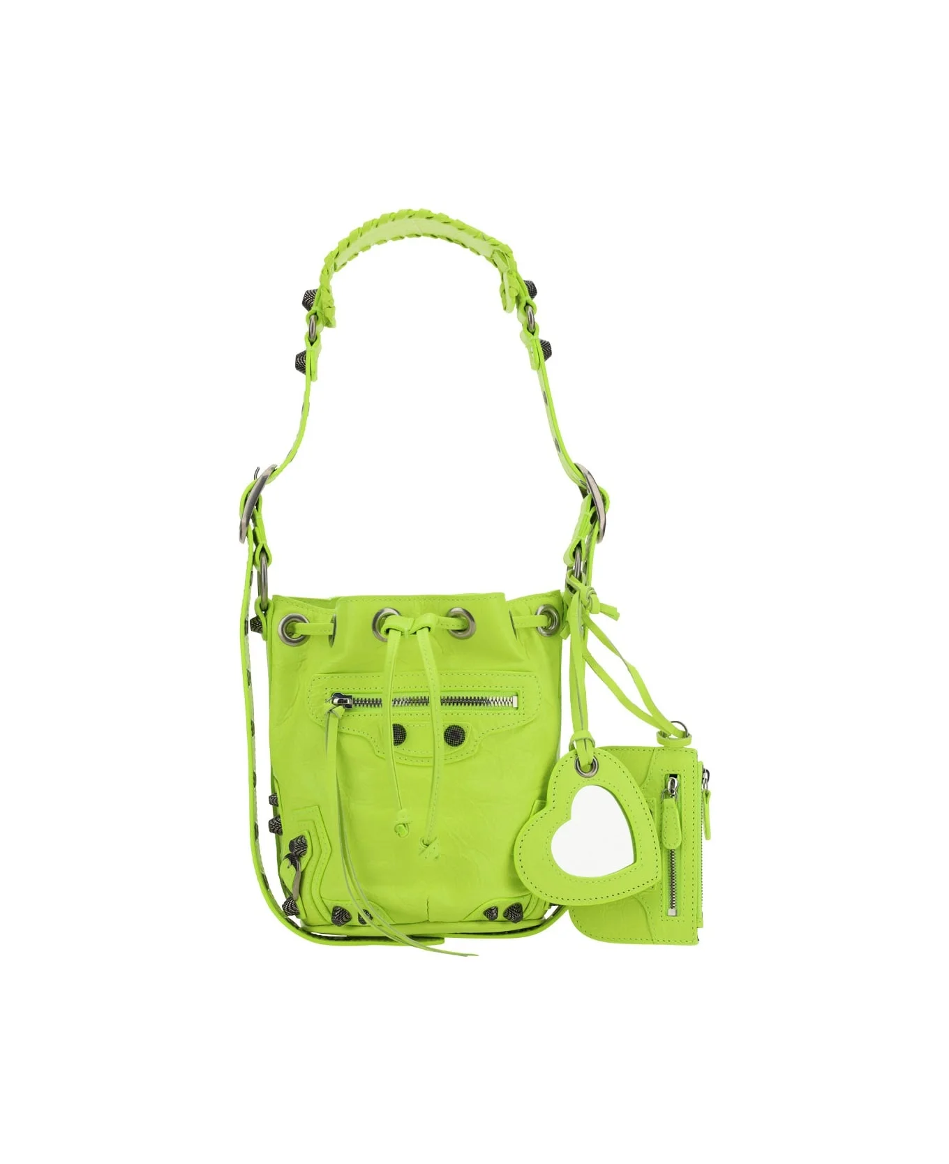 100% calf leather - Drawstring top closure - Adjustable shoulder strap Made in: Italy Color: Fluo Yellow Size and fit: - W 15 x H 20 x D 17 cm Model number: 7024311VGUY7206