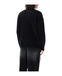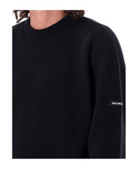 Crewneck Sweater By Balenciaga. Featuring: Crewneck Long Sleeves Ribbed Neck, Cuffs And Hem Logo Patch At Left Sleeve Knitted Trim Regular Fit Model Is 1,90 M Tall And He Is Wearing Size S Composition: 97% wool, 2% polyamide, 1% elastan Made in: Italy Color: Black Model number: 764454T1675