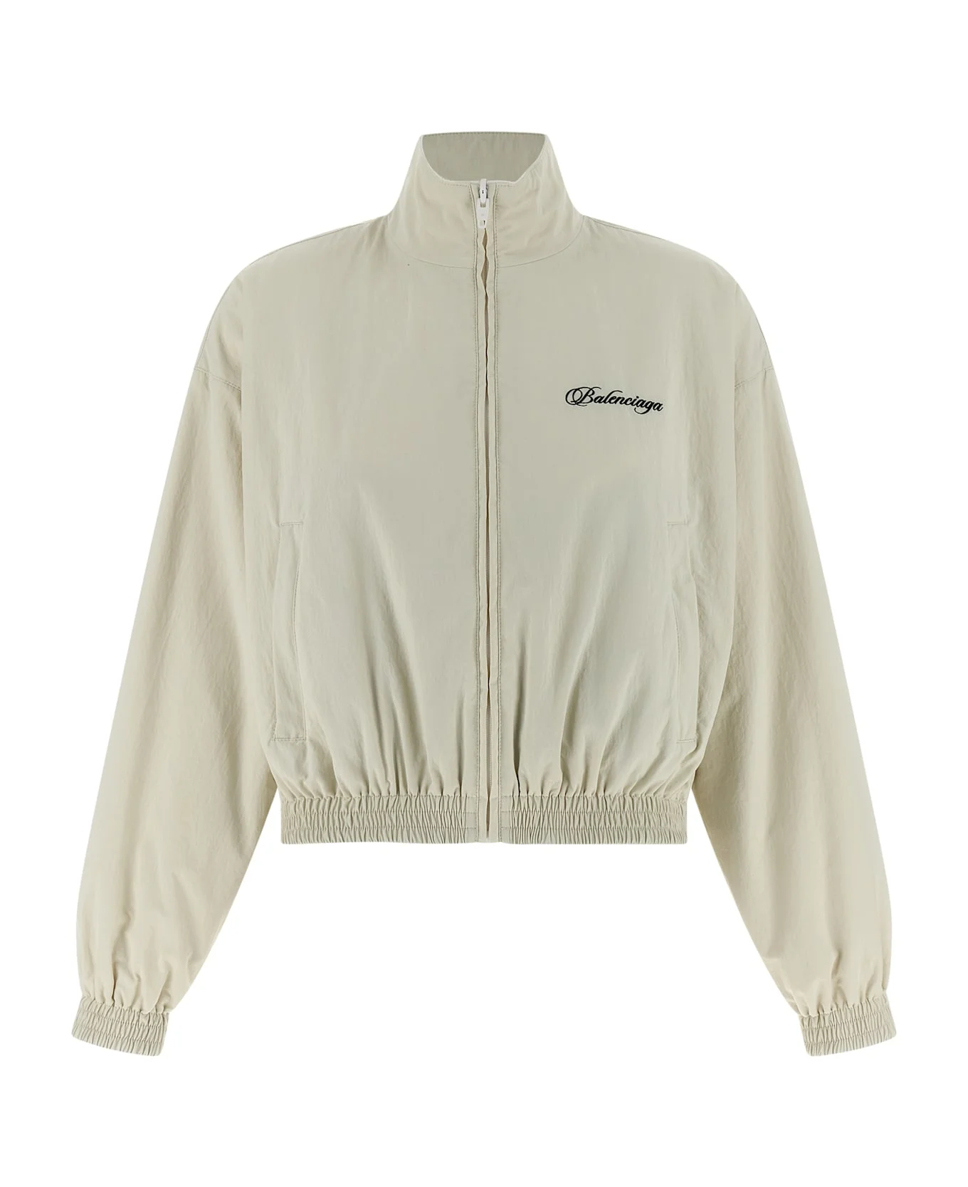 Reversible jacket in nylon tracksuit canvas and dry fleece, 'Cursive' embroidery on the front and back, crop model, high neck, front zip closure, pockets, long sleeves with elastic cuffs and dropped shoulder, elastic on the hem. Composition: 100% polyamide Made in: Italy Color: White Size and fit: - Comfort fit Model number: 857746TTO049012
