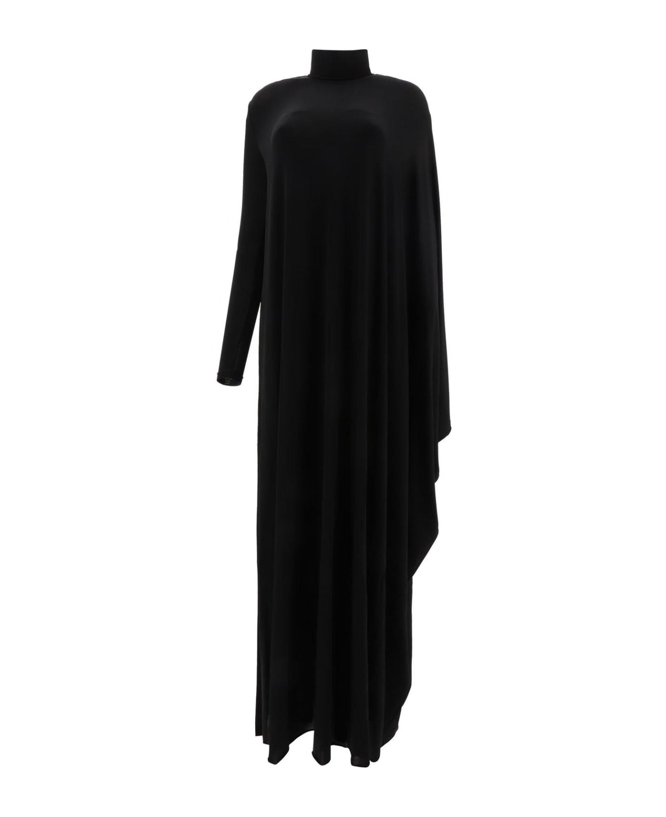 Asymmetric cape-effect satin-jersey maxi dress
