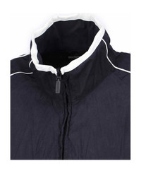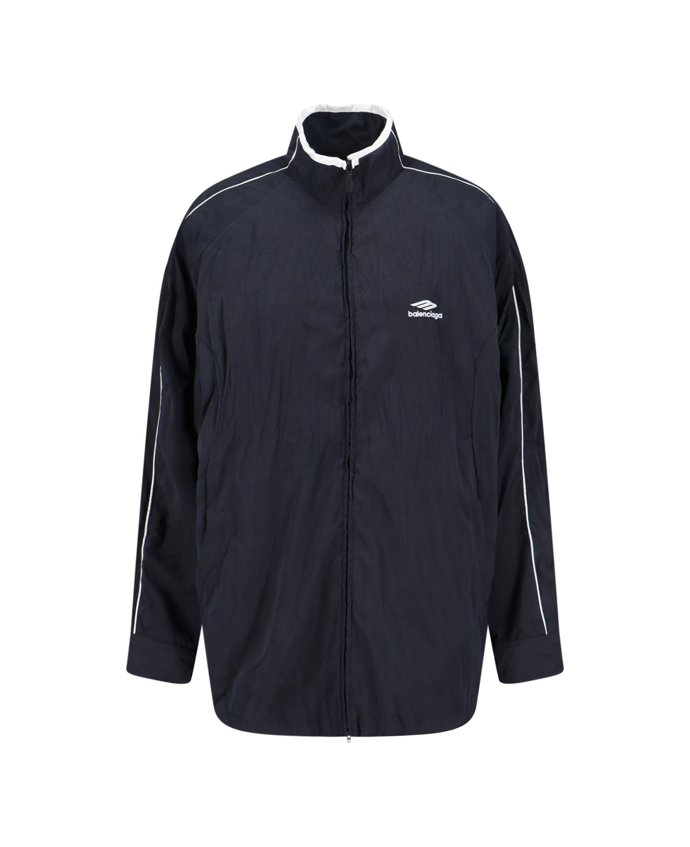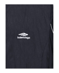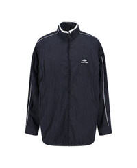 Balenciaga logo zip jacket in black fabric with high neck, dropped shoulders, contrasting embroidered details, double zip closure, contrast logo embroidery at the front, two side pockets, button cuffs, straight hem. Composition: 90% Polyester, 10% Polyamide Made in: Italy Color: Black Size and fit: - Vestibilita morbida Model number: 850861TTO441000