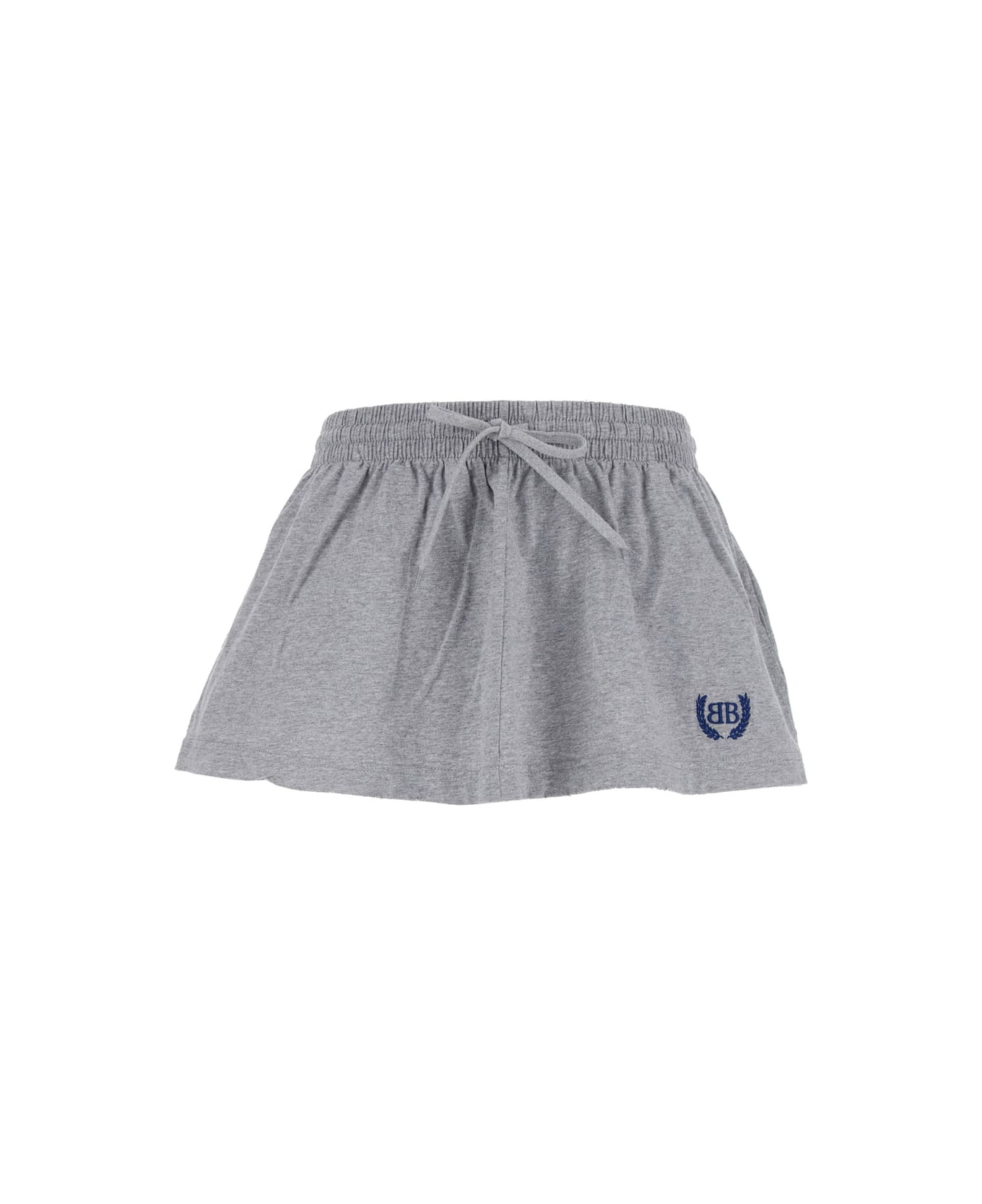Grey Miniskirt With Logo Embroidery On The Front And Elastic Drawstring Waist In Cotton Woman