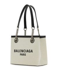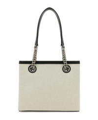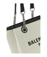 Shopping bag realized in canvas with contrasting leather inserts on the trimmings characterized by contrasting printed logo at the front. - Two metal chain handles with leather shoulder pads - Lined interior with a zip pocket Composition: Exterior: 100% Fabric 100% Leather Lining: 100% Fabric Finishing: Silver metal Made in: Italy Color: Beige Size and fit: - Width: 23 cm - Height: 19 cm - Depth: 11 cm - Handle height: 20 cm Model number: 7599412AAOK9260