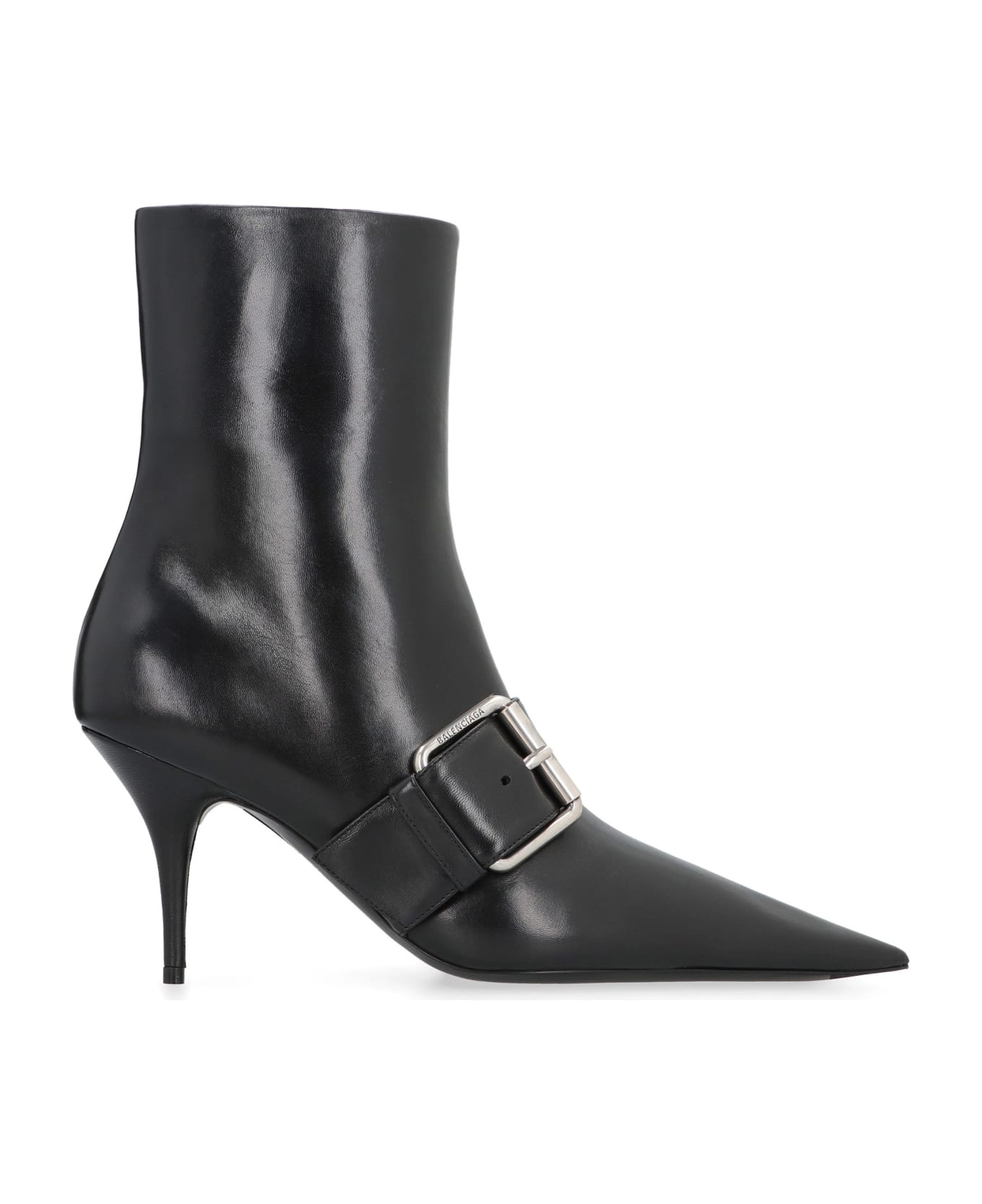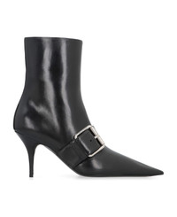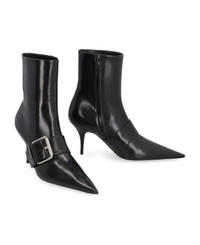 Knife buckled leather ankle boots