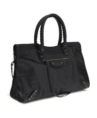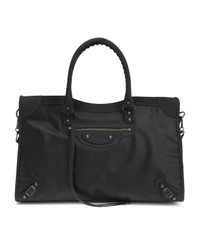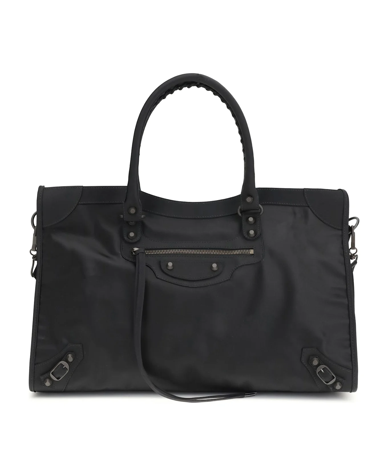 The le city grande handbag by balenciaga combines handcrafted elegance and practicality, with two hand-woven handles and a removable, adjustable shoulder strap. brass hardware enhances the design, while the zippered closure and knotted nylon pull ensures security. the model features a front zippered pocket with knotted nylon puller and an interior zippered pocket, combining functionality with distinctive style. Composition: 80% % Polyamide, 20% % Polyester Made in: Italy Size and fit: - W 46 x H 29 x D 16 cm Model number: 8083882AB9J1000