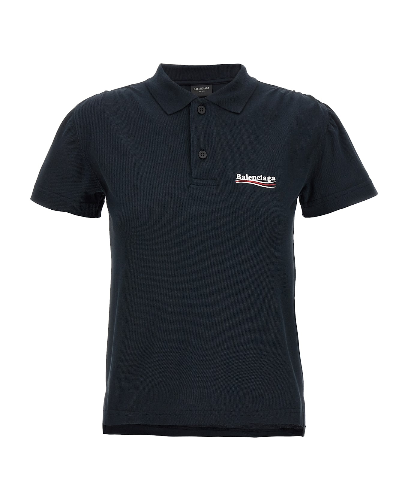 Pique delave cotton polo shirt with logo embroidery at the front and back, collar and buttons, crinkled short sleeves, side slits, and asymmetrical hem. Composition: 100% cotton Made in: Portugal Color: Blue Size and fit: - true to size fit Model number: 833244TSVN98737