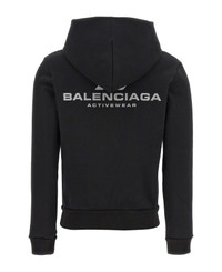 Stretch cotton hoodie with logo print on the front and back, zip closure, pockets, long cuffed sleeves. Composition: 92% cotton, 8% elastane Made in: Portugal Color: Black Size and fit: - Slim fit Model number: 788243TQVV11000