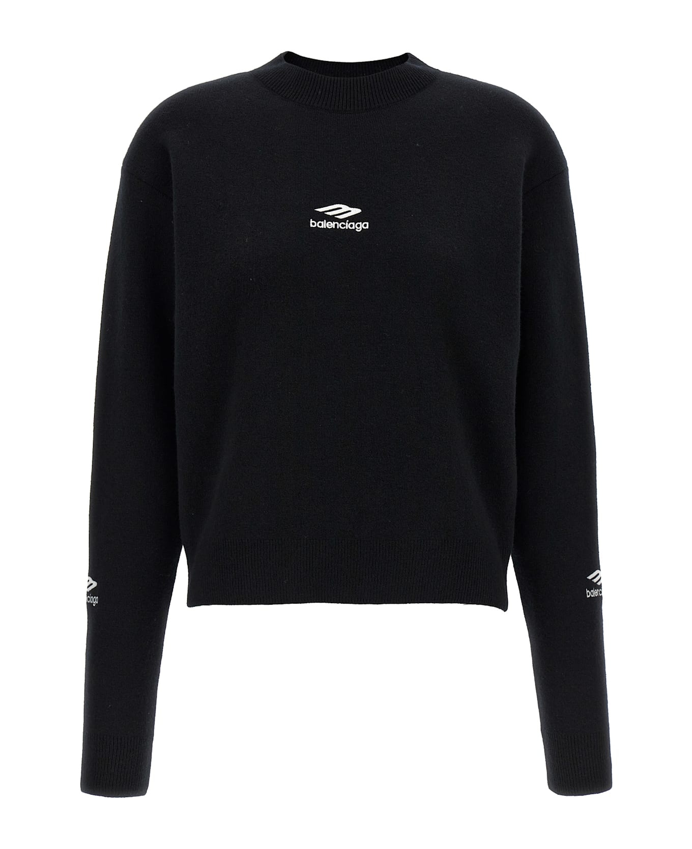 Wool blend sweater with logo embroidery on the front and sleeves, crew neck, long sleeves. Composition: 95% wool 4% polyamide 1% elastane Made in: Italy Color: Black Size and fit: - true to size fit Model number: 807779T17011000