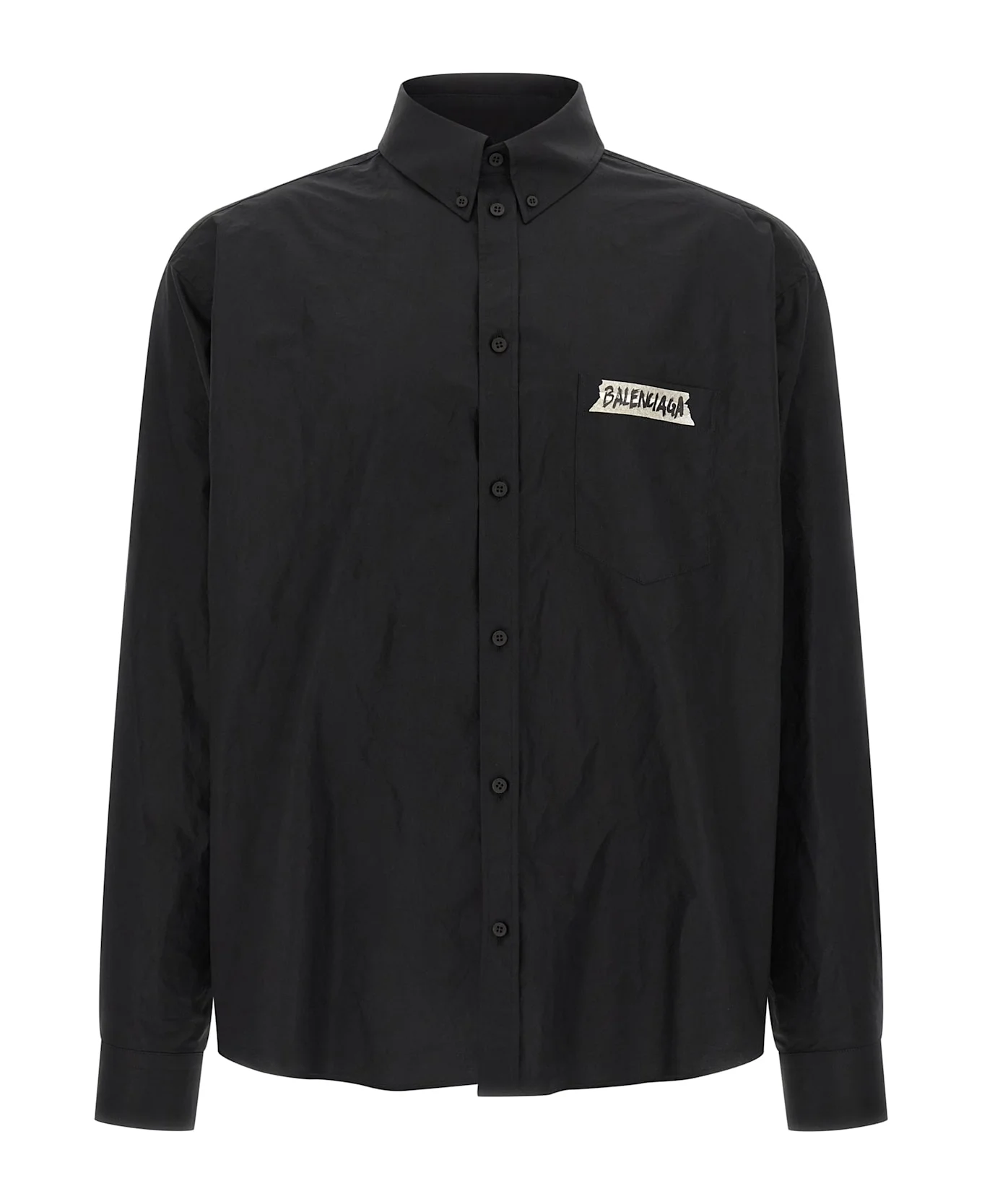 Button-down cotton poplin shirt with 'Masking Tape' print on the front and back, breast pocket, front button closure, long cuffed sleeves and dropped shoulders. Composition: 100% cotton Made in: Italy Color: Black Size and fit: - Large fit Model number: 857809TRM281000