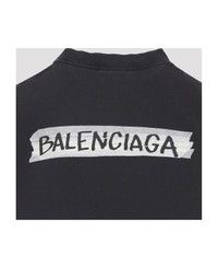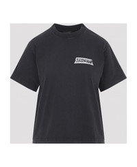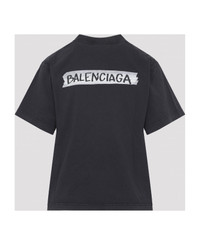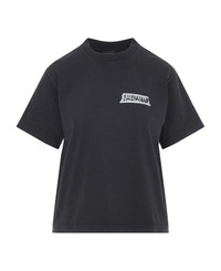 Balenciaga Faded Washed Black Cotton Medium Fit T-Shirt. Pure faded washed black t-shirt, round neck, chest contrasting white design with lettering logo, back contrasting white design with lettering logo, short sleeves, straight hem. Made in: Portugal Color: Faded Washed Black Model number: 850990TTVL61041
