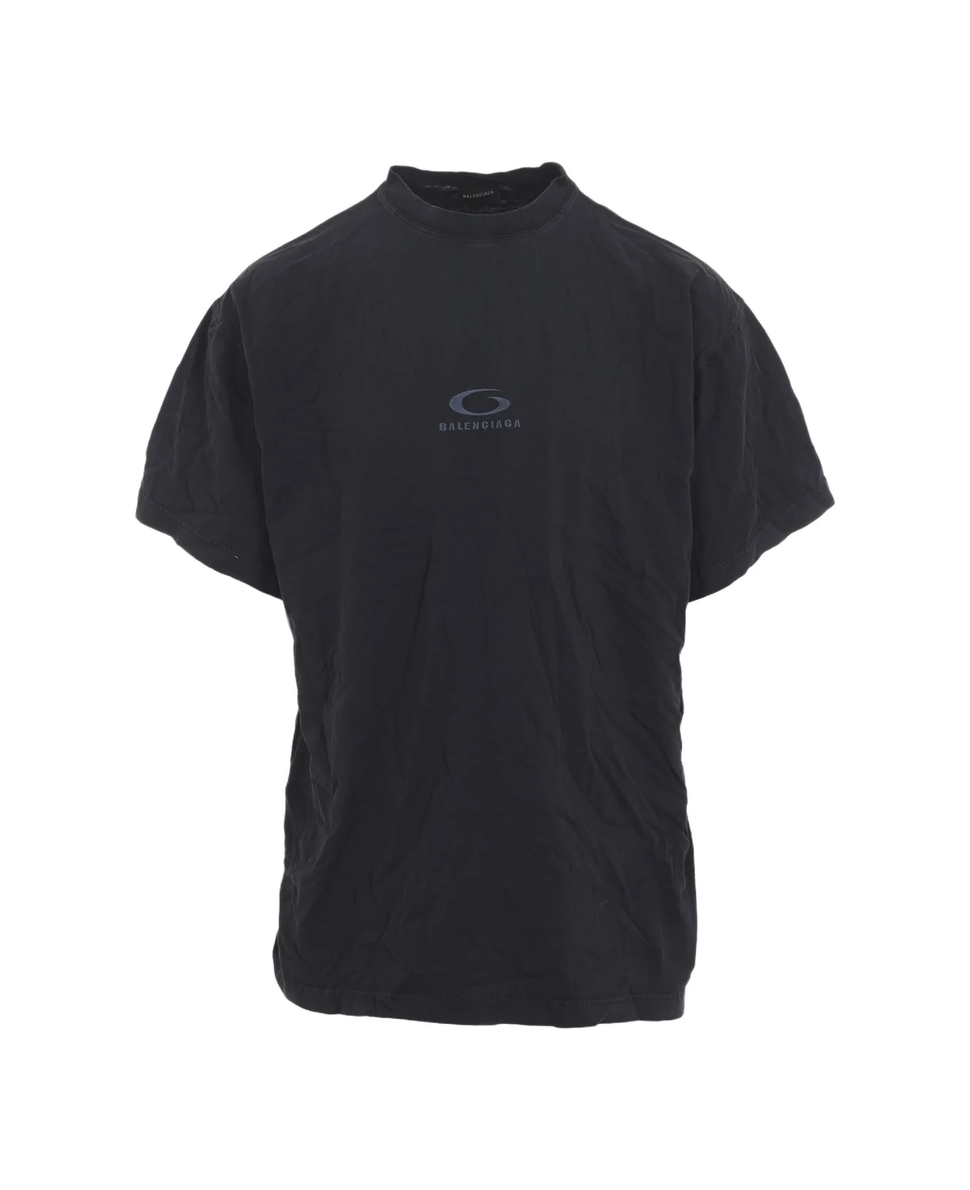 Balenciaga Faded Washed Black Cotton Oversized T-Shirt. Pure faded washed black cotton t-shirt, round neck, chest embroidered grey logo, short sleeves, straight hem. Made in: Portugal Color: Faded Washed Black Model number: 850345TTVH91041