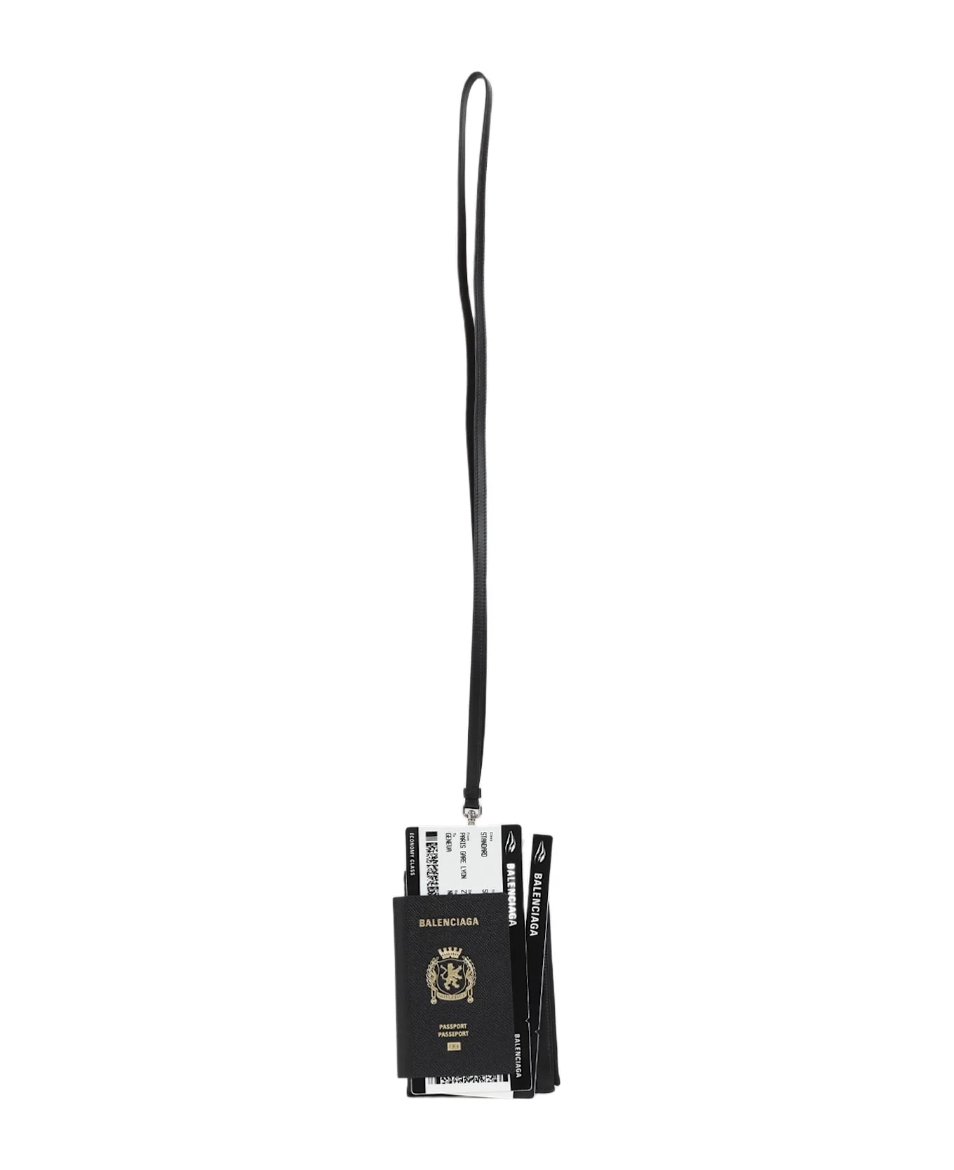 Balenciaga Passport Black Calf Leather Phone Holder. Crafted from black calf leather, aged silver-finish hardware, front logo graphic, two trompe l` il tickets on the front, detachable shoulder strap. Zip fastening, one main compartment, three inner card slots and one back pocket. Made in: Italy Color: Black Size and fit: - W:12cm H:20cm D:2cm Model number: 7877332AA3R1000