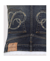 Balenciaga Patched Blue Cotton Top. Crafted from blue cotton denim, top white lace insert with fine straps. 5-pocket jeans trompe l`oeil, rhinestone embellishments and branded label on the back. Made in: Italy Color: Dark Blue Model number: 838716TSWC45002