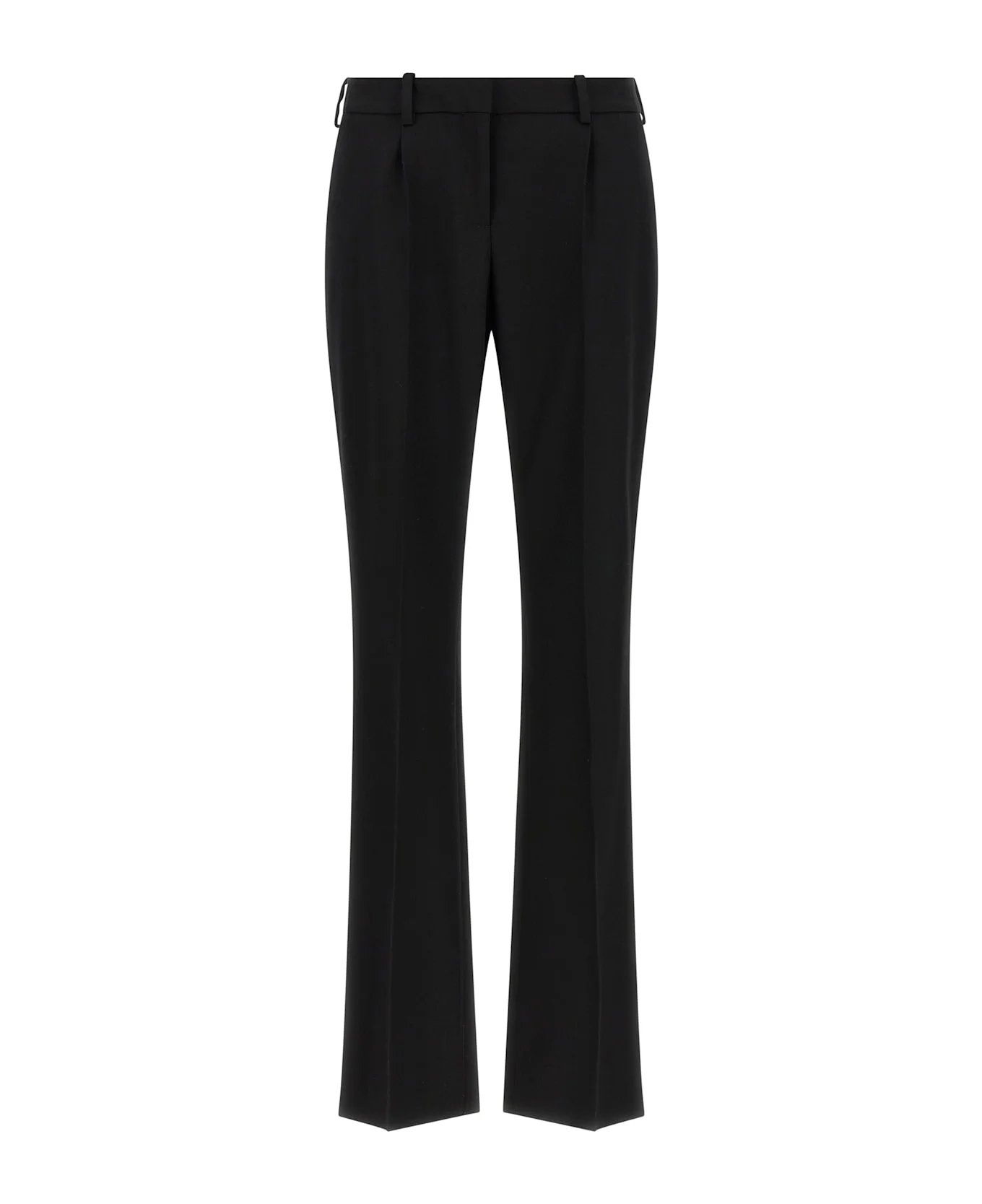 'Sartoriali Slim' tailored pants in stretch wool twill with low waist, pince, stretched pleat, straight leg, front zip and snap button closure, front French pockets, back welt pockets. Composition: 98% wool, 2% elastane Made in: Italy Color: Black Size and fit: - slim fit - FRENCH size Model number: 872125TJT211000