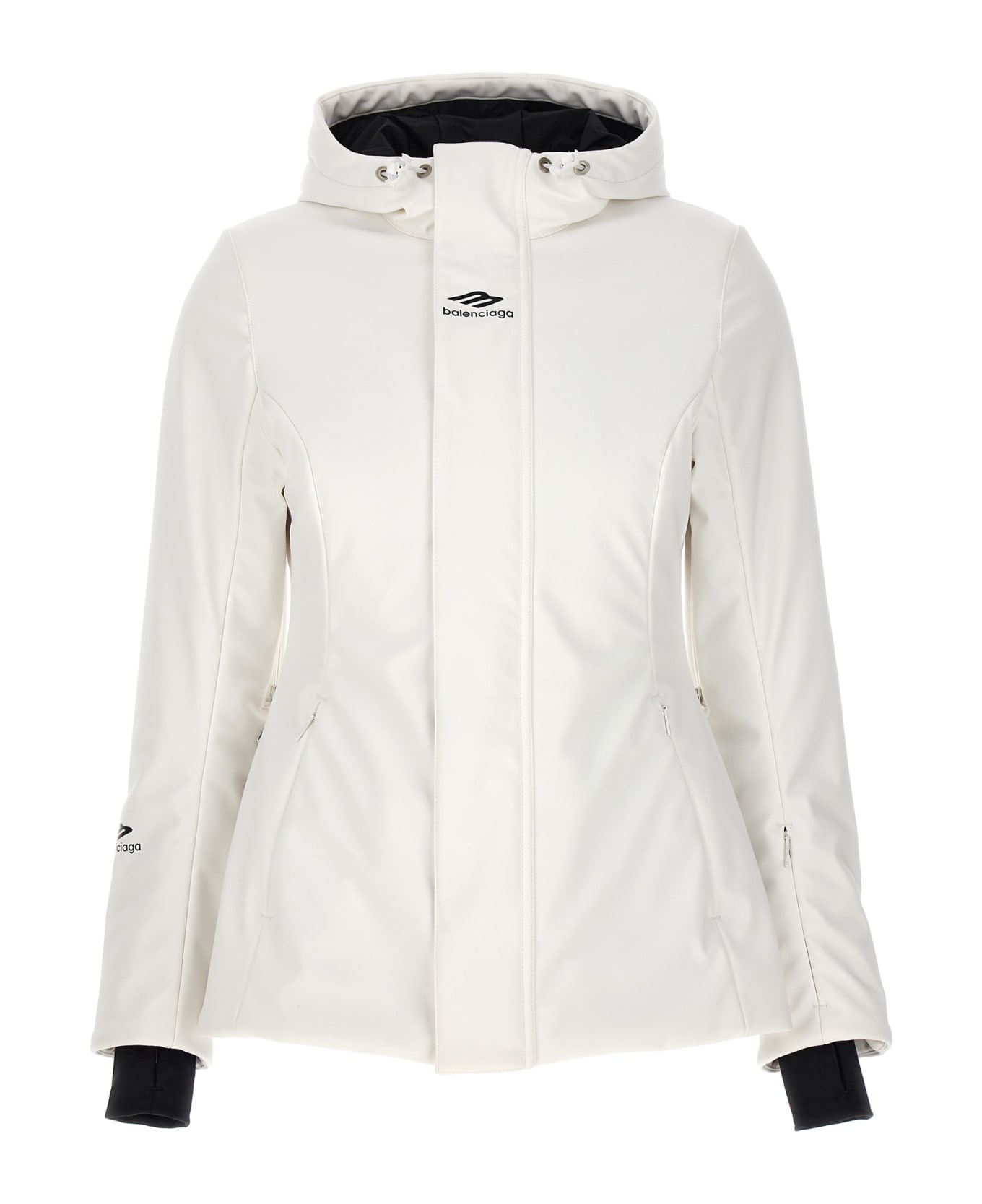 'Ski Hourglass 3B Sports Icon' doubled stretch nylon parka, 40 gsm light padded technical lining, zip and button closure, hood, pockets, seams sealed with Waterproof tape, waterproof zip mesh slits under the armholes, long sleeves with windproof cuffs with thumb holes and stretch finish, removable stretch snow gaiter. Composition: 78% polyamide, 22% elastane Color: White Size and fit: - true to size fit French size Model number: 773998TPQ379000